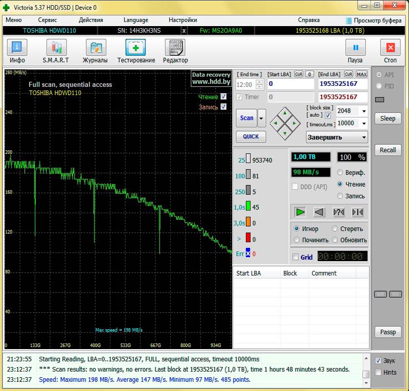 Жесткий диск Toshiba P300 [HDWD110UZSVA] обладает свойствами надежного запоминающего устройства, предназначенного для установки в настольные компьютеры. Благодаря скорости вращения шпинделя на уровне 7200 об/мин накопитель отличается быстрым обменом информации. Емкость этого накопителя составляет 1 ТБ, что обеспечивает размещение довольно большого количества разнообразных файлов. В конструкции Toshiba P300 применяется интерфейс SATA III, который гарантирует широкую совместимость накопителя с компьютерами и другими вычислительными системами.