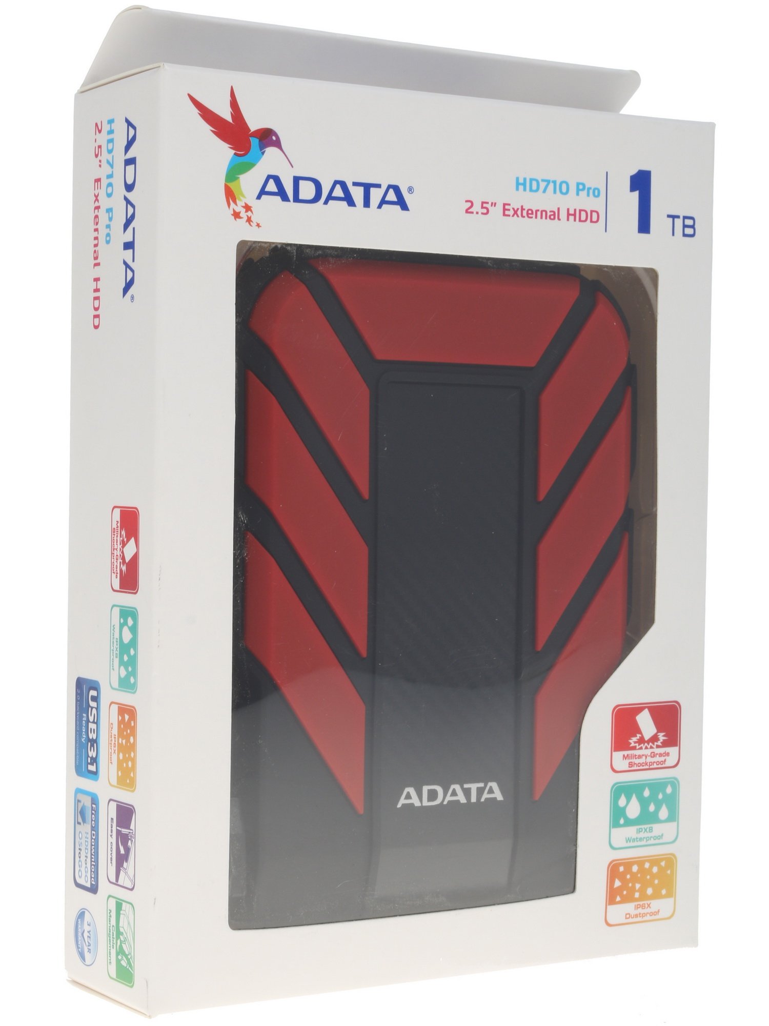 Внешний HDD A-Data HD710 Pro [AHD710P-1TU31-CRD] предлагает пользователям компьютерных, цифровых и мобильных устройств дополнительный 1 ТБ памяти для хранения информации. Теперь вы можете не хранить фото, видео или музыку на своем устройстве, а позволить внешнему диску хранить ее, надежно защищая. Модель соответствует форм-фактору 2.5" и выполнена в прочном корпусе красного цвета. Подключение диска осуществляется посредством интерфейсов USB 3.0 Type A, USB 2.0 Type A, а также USB 3.1 Type A, что говорит о совместимости с многими устройствами.