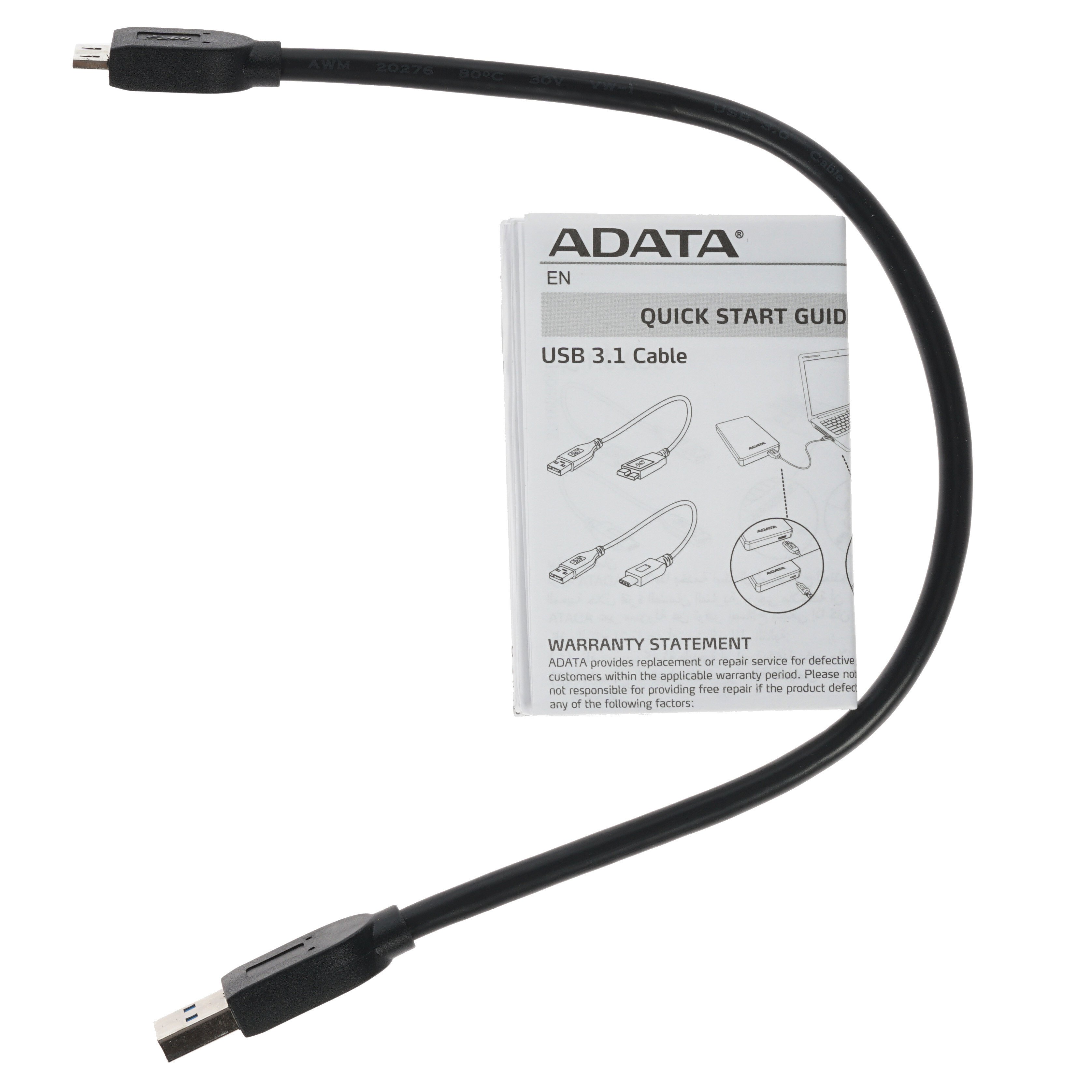 Внутри устройства расположен диск форм-фактора 2.5 дюйма с емкостью 1 ТБ под размещение файлов. Для подключения к компьютеру используется кабель с интерфейсом USB 3.2 Gen1 Type-A. HDD ADATA HD720 выдерживает активную эксплуатацию и сохраняет целостность данных.