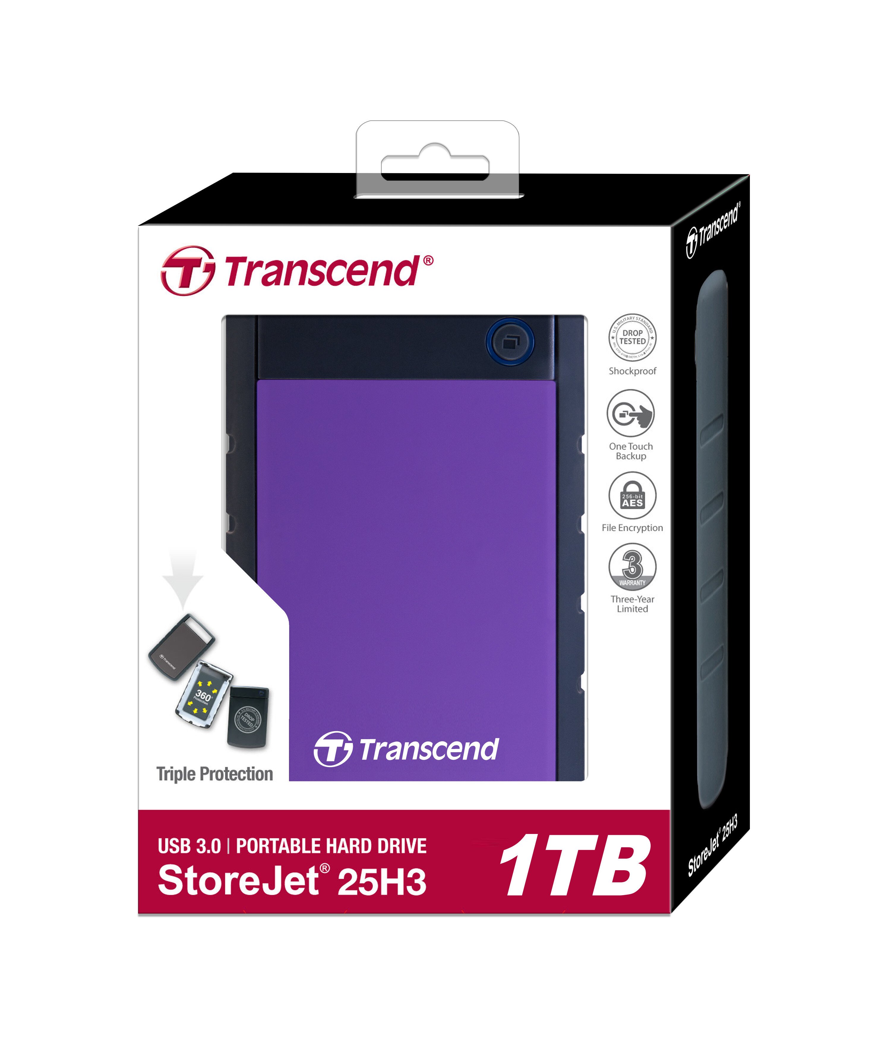 Внешний HDD Transcend USB 3.0 1Tb TS1TSJ25H3P StoreJet 25H3P (5400 об/мин) 2.5" фиолетовый