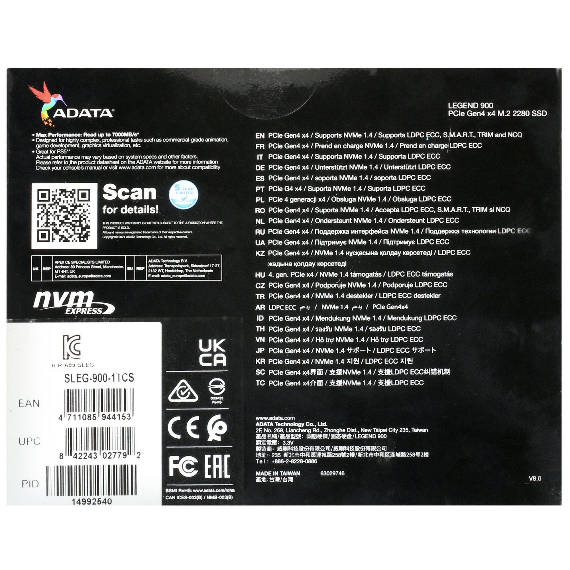 M.2 накопитель ADATA LEGEND 900 [SLEG-900-1TCS] со скоростью до 7000 Мбайт/сек в режиме чтения обеспечивает повышение производительности аппаратной платформы при рендеринге, визуализации, в программах с графикой 3D, а также в процессе обработки игровых ресурсов. Накопитель предлагает 1000 ГБ свободного пространства для размещения файлов. Подключение диска ADATA LEGEND 900 [SLEG-900-1TCS] выполняется посредством интерфейса PCI-E 4.0 x4. Устройство выполнено в форм-факторе M.2 2280, поэтому совместимо с настольными компьютерами и ноутбуками с поддержкой соответствующего разъема на материнской плате.