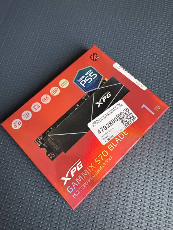 Накопитель SSD ADATA XPG BLADE S70, 1Tb, PCIe 4.0 x4, M.2 2280, NVMe, R/W 7400/5500, с радиатором
