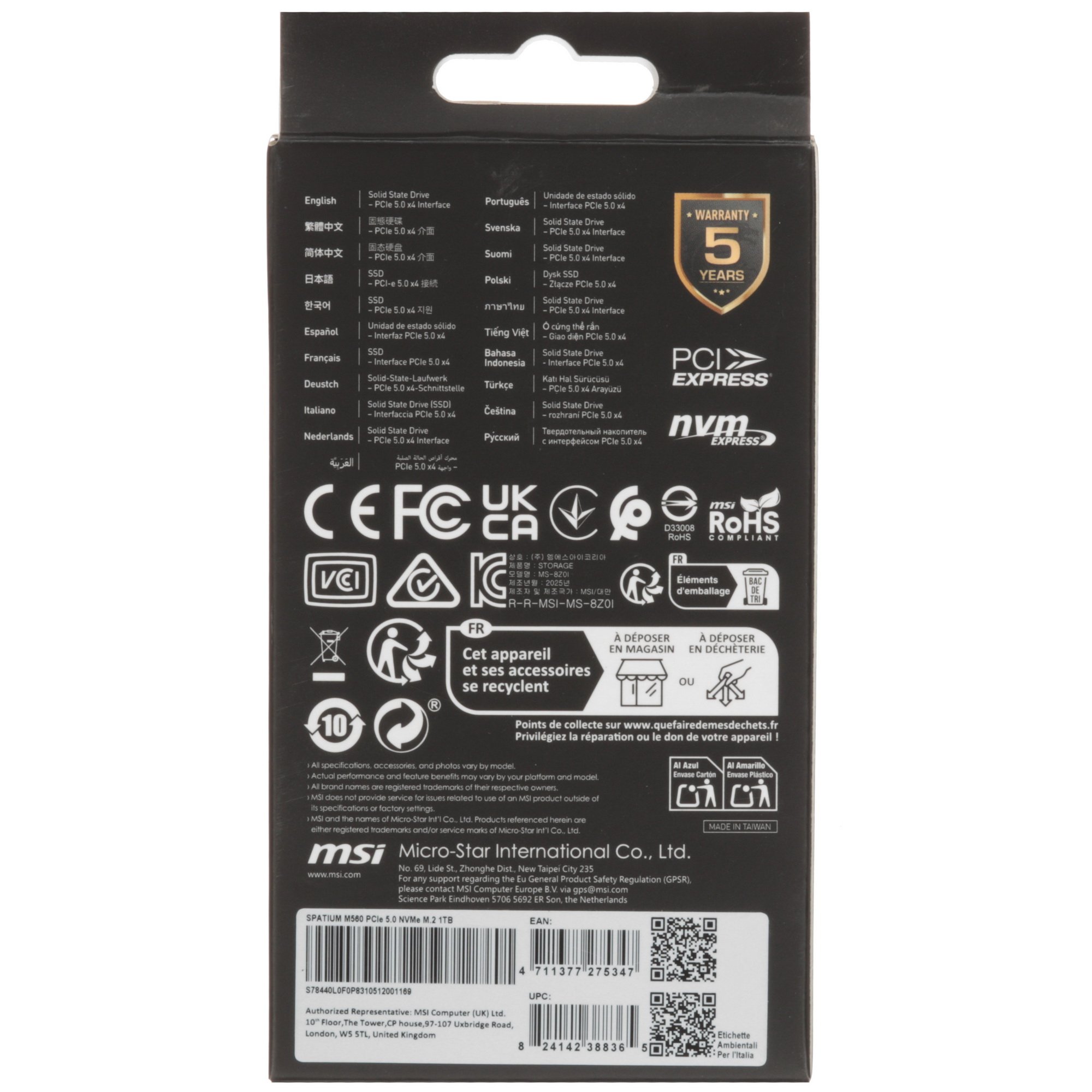 Накопитель SSD PCIE 5.0 NVME M.2 1Tb SPATIUM M560 1Tb MSI