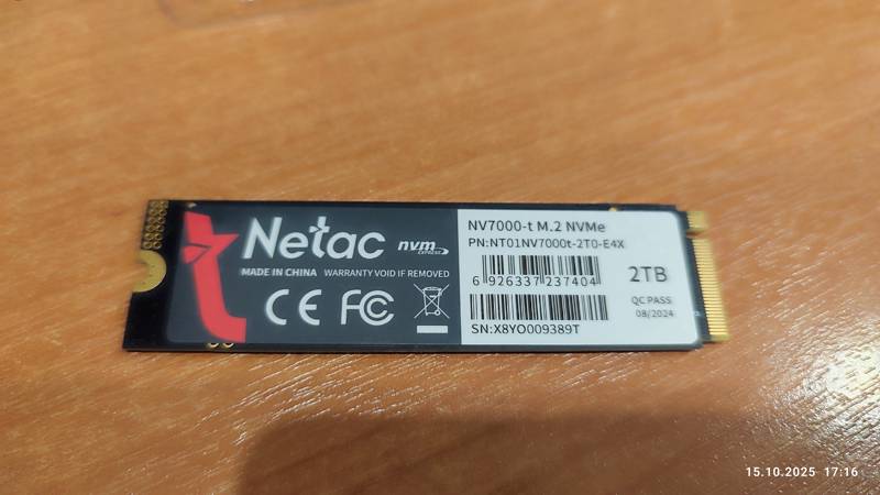 1000 ГБ M.2 NVMe накопитель Netac NV7000-t [NT01NV7000t-1T0-E4X] устанавливается в интерфейс PCIe 4.0 x4 на материнской плате ноутбука или ПК. При наибольшей скорости чтения данных 7300 МБайт/сек и записи на скорости 6600 МБайт/сек устройство долговременной памяти гарантирует быструю загрузку ОС и любого софта. Накопитель емкостью 1000 ГБ также обеспечит хранение больших объемов софта, мультимедиа и документов.