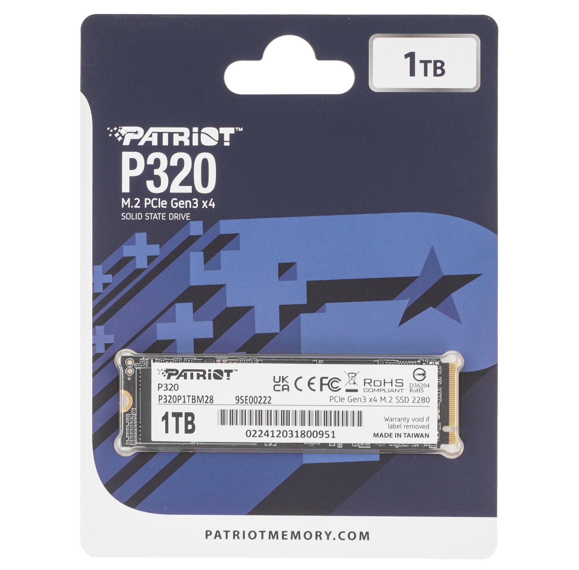 Накопитель SSD Patriot P320, 1Tb, PCIe 3.0 x4, M.2 2280, NVMe, R/W 3000/2200
