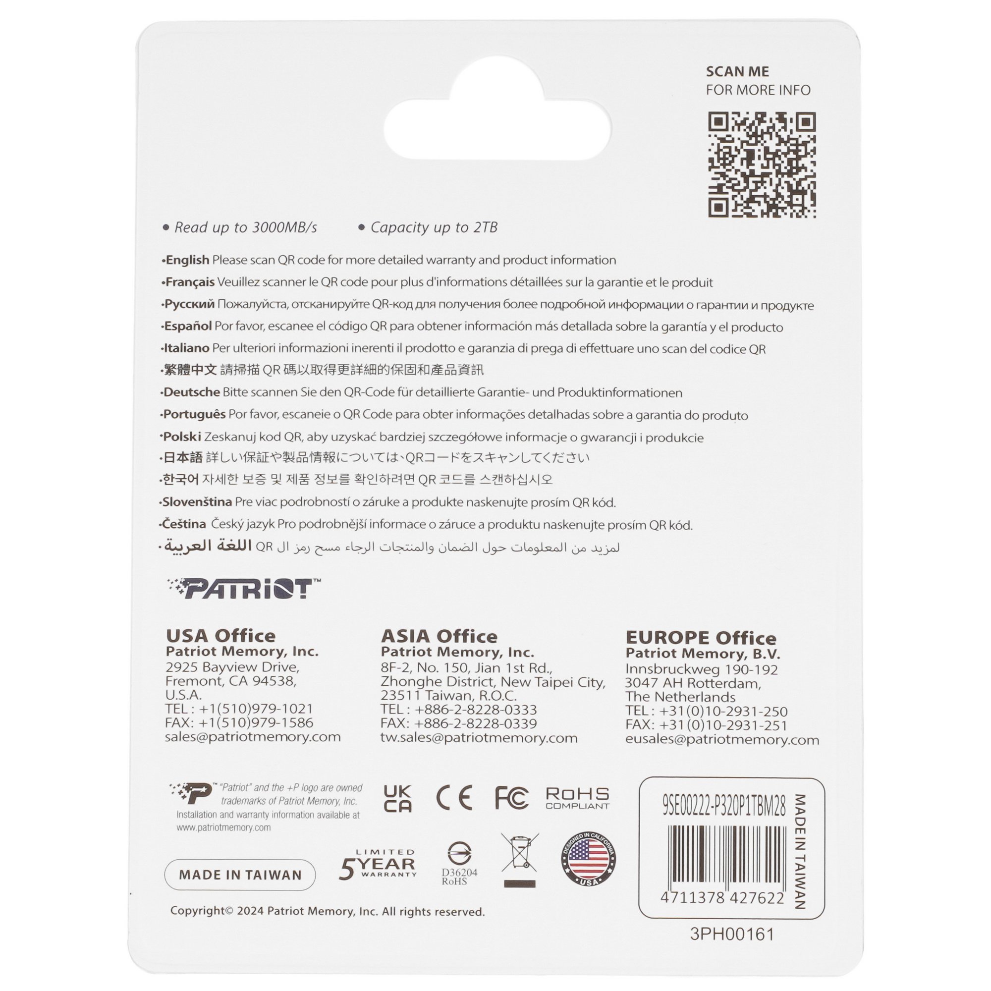 Тип памяти 3D NAND означает, что конструкция вмещает больше ячеек памяти в несколько слоев, а не только по вертикали и горизонтали. Это дает разместить увеличенный объем данных и хранить их без опасения потерять. Доступ к файлам на Patriot P320 обеспечивается благодаря интерфейсу NVMe. Устройство гарантирует стабильную, бесперебойную работу с данными в пределах 480 ТБ.
