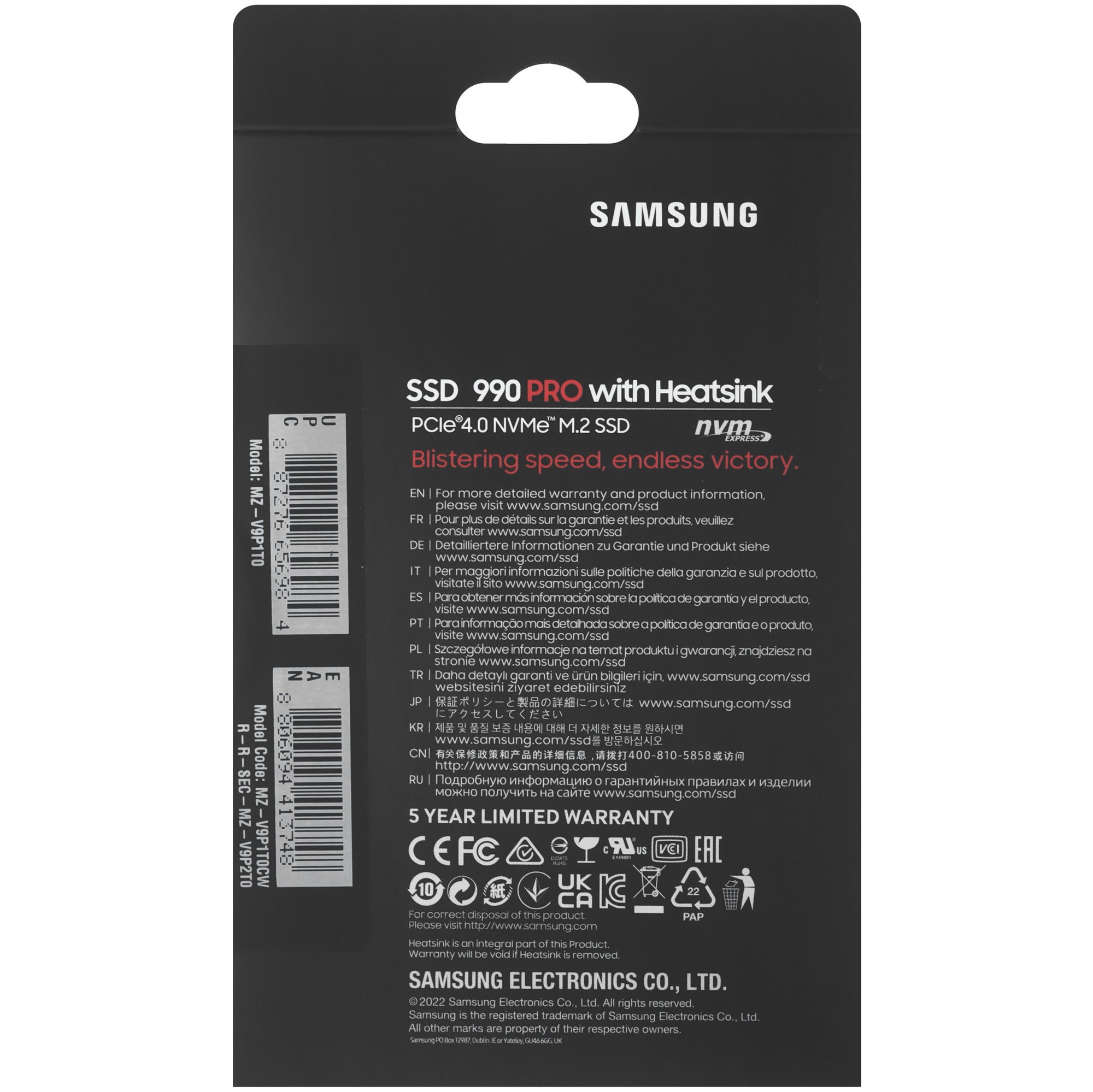 Накопитель SSD Samsung 990 PRO, 1000Gb, PCIe 4.0 x4, M.2 2280, NVMe, R/W 7450/6900, с радиатором