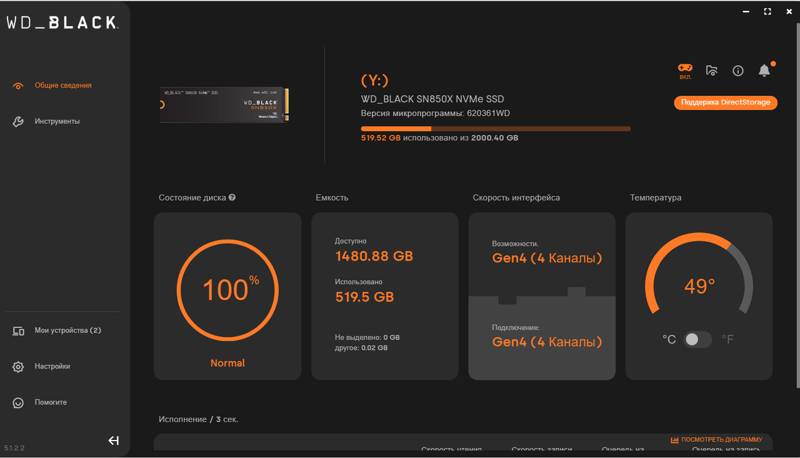 1000-гигабайтный SSD M.2 накопитель WD Black SN850X [WDS100T2X0E] ориентирован на работу в составе игрового компьютера экстра-класса. Устройство использует для обмена информацией высокоскоростной интерфейс PCI-E 4.0 x4. Скоростные показатели накопителя достаточны не только для ресурсоемких игр. Видеообработка, архивирование и другие действия, связанные с обработкой больших массивов информации, займут минимум времени. Накопитель обеспечивает скорость последовательного чтения до 7300 МБ/с. Предельная скорость последовательной записи немногим ниже – 6300 МБ/с.