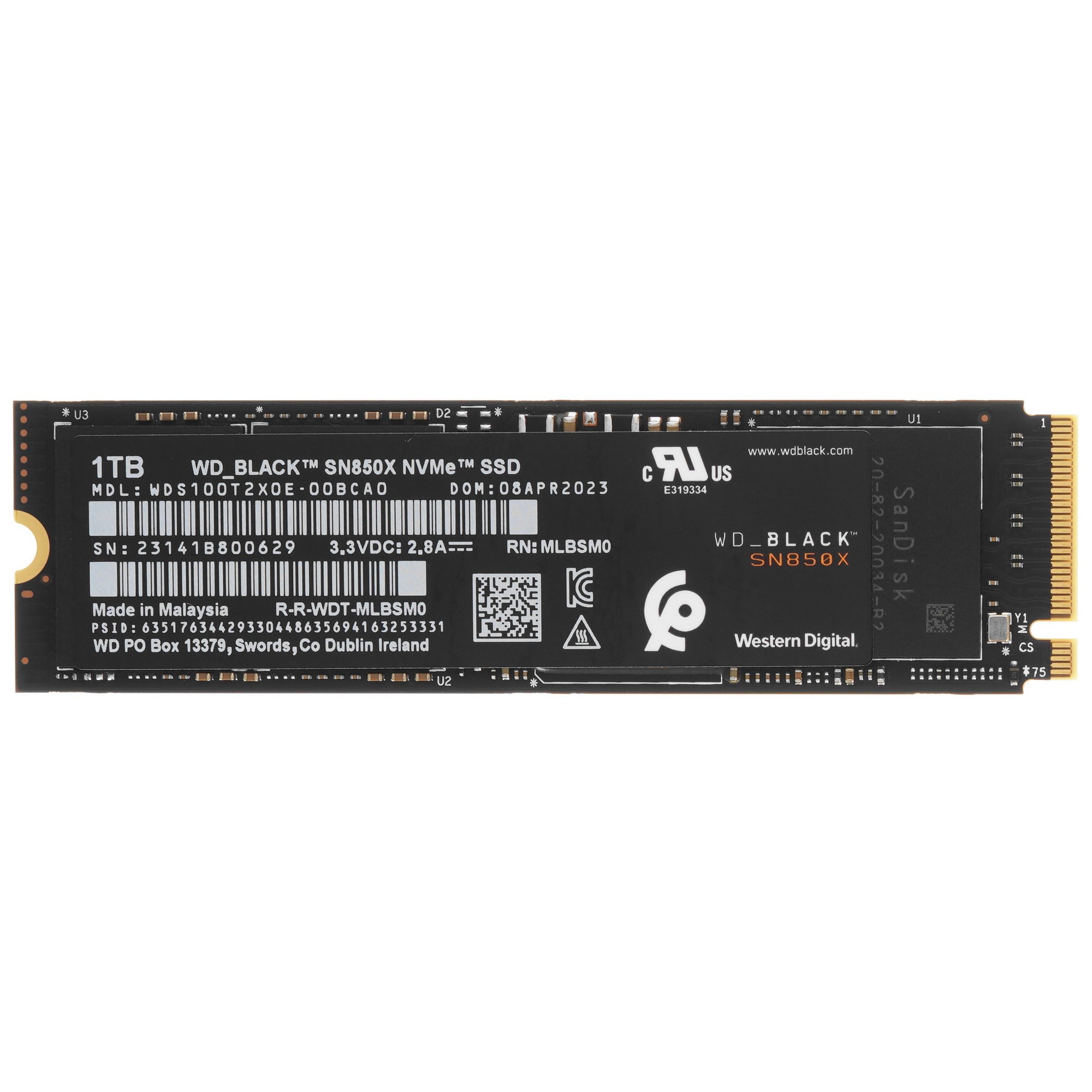 Накопитель SSD WD 1Tb Black SN850X, M.2(22x80мм), NVMe, PCIe 4.0 x4, 3D TLC, R/W 7300/6300Mb/s, IOPs 800 000/1 100 000, TbW 600, DWPD 0.3 (12 мес.)