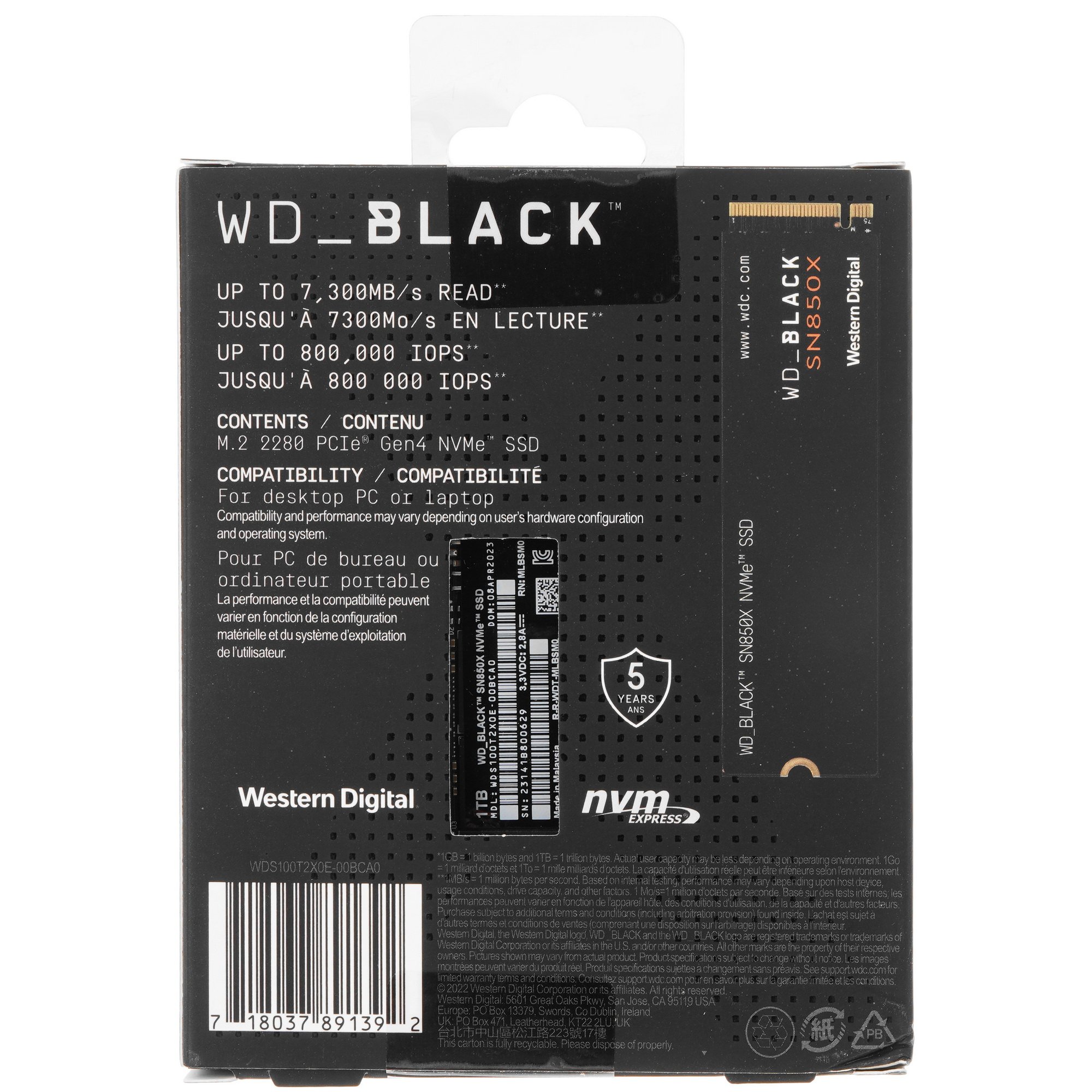 Накопитель WD Black SN850X [WDS100T2X0E] соответствует самому распространенному форм-фактору – 2280. Устройство совместимо с подавляющим большинством стационарных ПК и многими ноутбуками. Накопитель сочетает высокую производительность с малым энергопотреблением. Модель не подвержена избыточному нагреву при любых нагрузках.