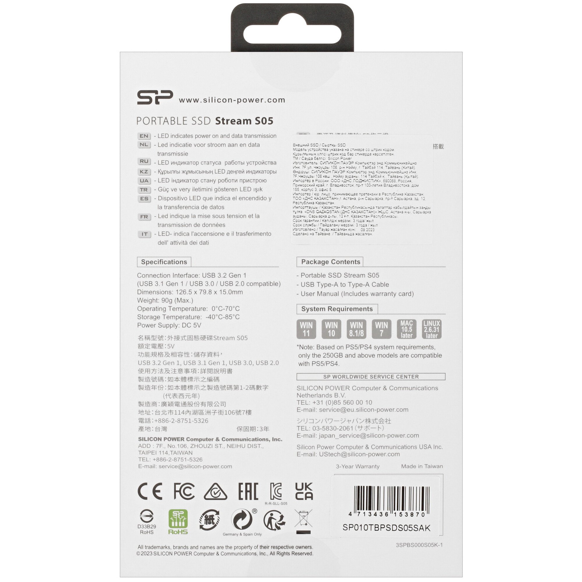 Внешний SSD Silicon Power S05 черного цвета обладает вместимостью 1000 ГБ и подходит для хранения больших по объему файлов: видео, игры. Интерфейс подключения USB 3.2 Gen 1 Type-A обеспечивает скорость чтения файлов 460 Мбайт/с и скорость записи – 450 Мбайт/с. Благодаря этому ресурсоемкие приложения моментально запускаются на ПК или ноутбуке, к которым подключается SSD-накопитель. Поддерживается возможность подключения накопителя к игровым приставкам PS4, PS5.