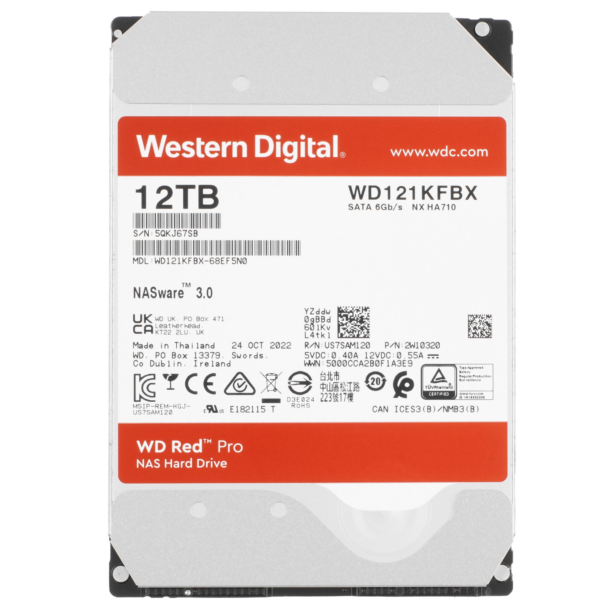 Жесткий диск WD Original SATA-III 12Tb WD121KFBX Red Pro (7200rpm) 256Mb 3.5"