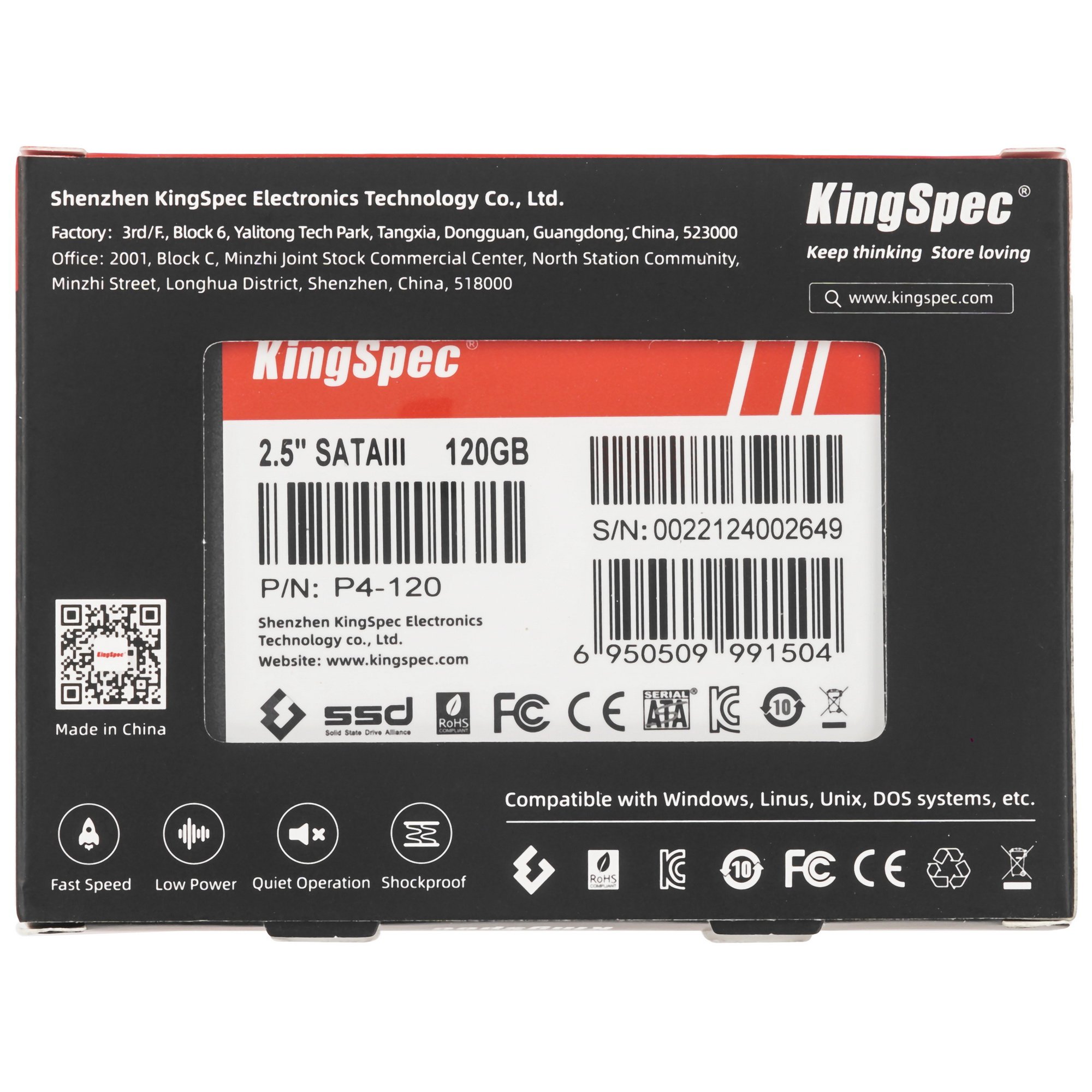 Накопитель SSD KingSpec P4-120, 120Gb, SATA III, 2.5", R/W 500/500