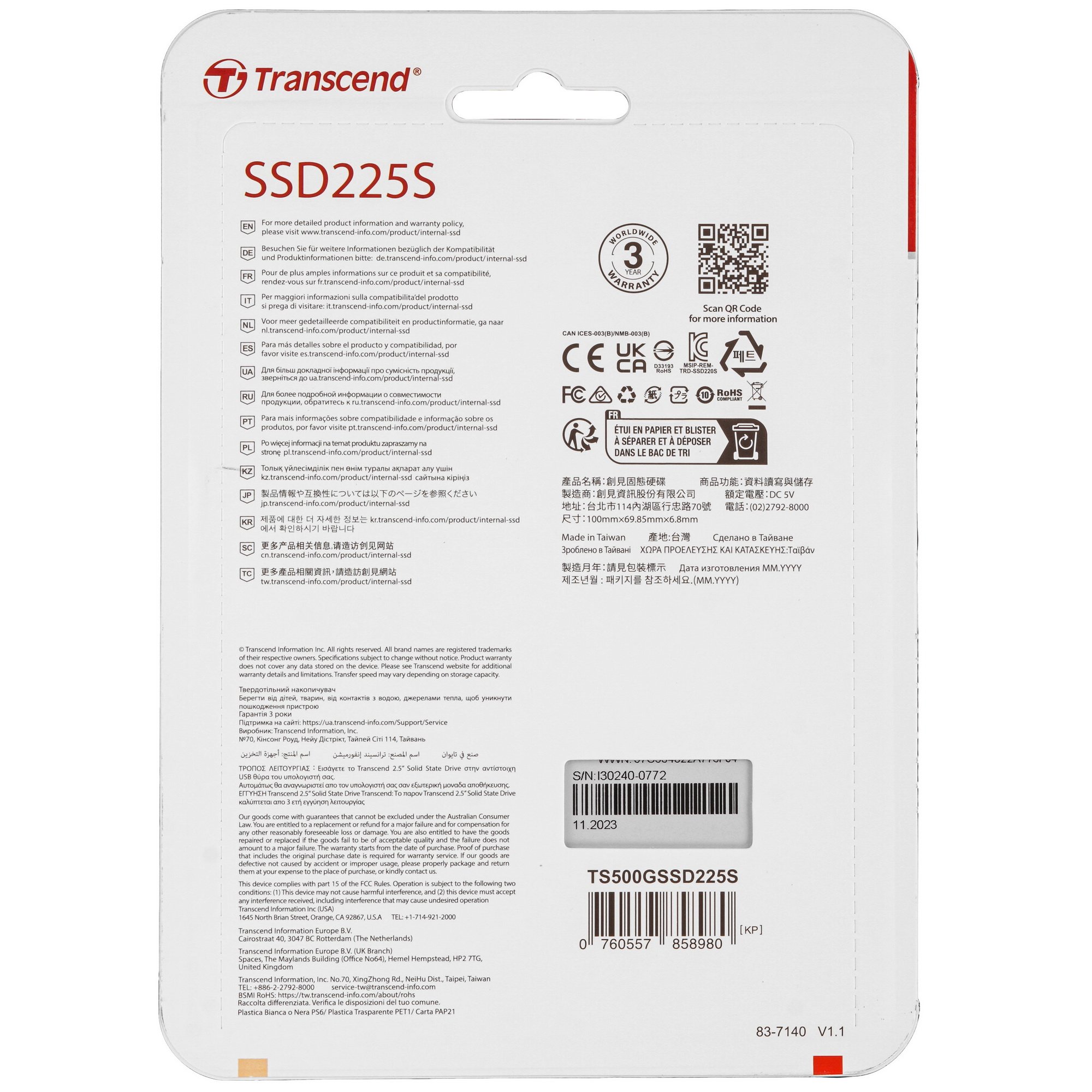 SATA накопитель Transcend SSD225S [TS500GSSD225S] 2.5” — твердотельный накопитель с объемом хранилища 500 ГБ. С помощью разъема SATA модель можно устанавливать в стационарные компьютеры и портативные ноутбуки любой конфигурации, а также сервера средней мощности. Устройство способно заменить жесткий диск и позволяет увеличить скорости работы ПК — после апгрейда операционная система, приложения будут загружаться за секунды. В отличие от HDD в SSD нет подвижных частей, он не перегревается при непрерывном перемещении движущихся элементов, устойчив к ударам, вибрации, сотрясениям.