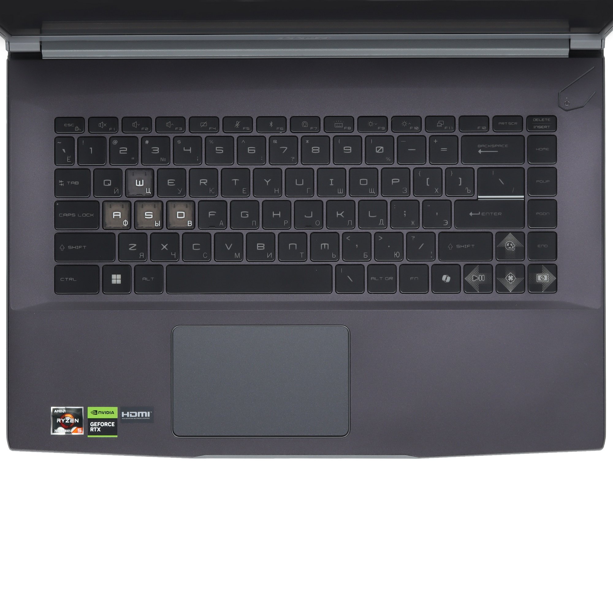 Ноутбук MSI Thin A15 B7UCX в сером корпусе из алюминия относится к игровым моделям, которые также можно использовать для работы. В основе функционирования лежат процессор AMD Ryzen 5 7535HS и 8 ГБ оперативной памяти. Для хранения игр и программ у лэптопа есть твердотельный накопитель 256 ГБ. Изображение выводится на 15.6-дюймовый IPS-экран с разрешением 1920x1080 пикс. Для предотвращения бликов он получил матовое покрытие. Дополняют конфигурацию MSI Thin A15 B7UCX веб-камера, микрофон, цифровой блок и синяя подсветка клавиатуры.