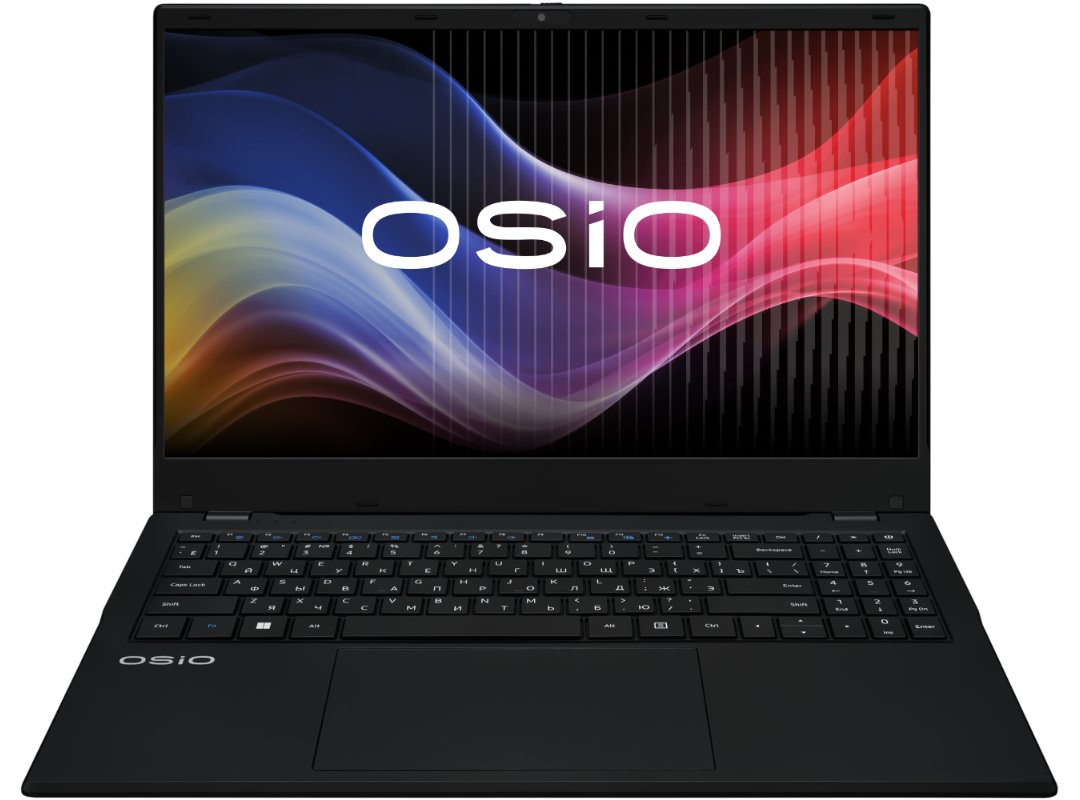 Ноутбук OSiO BaseLine B150i-009b черного цвета оснащен 15.6-дюймовым экраном с матовым антибликовым покрытием. На него выводится изображение в максимальном разрешении 1920x1080. Предельной яркости дисплея 250 Кд/м² достаточно, чтобы пользоваться ноутбуком при разном освещении, в том числе при естественном свете на улице. Для проведения прямых эфиров в сети и созвонов по видеосвязи предусмотрены динамики, микрофон и веб-камера на 2 Мп. Когда камера не нужна, ее можно прикрывать специальной шторкой.