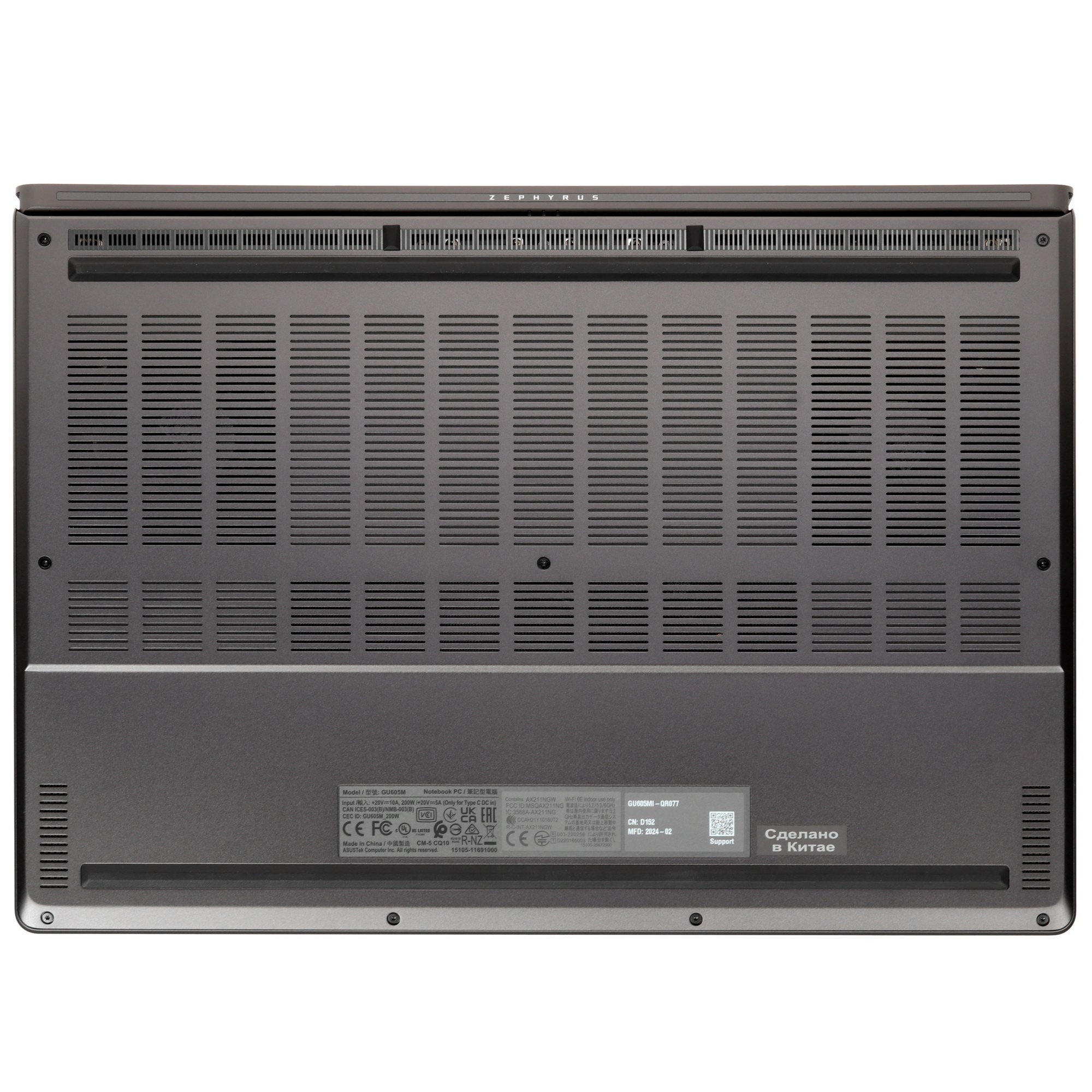 Ноутбук ASUS ROG Zephyrus G16 GU605MI-QR077 диагональю 16" выполнен в сером корпусе. Основу его аппаратной части составляет процессор Intel Core Ultra 7 155H с 10 энергоэффективными и 6 производительными ядрами. Он делает вычисления и обрабатывает информацию на 22 потоках одновременно. Это определяет многозадачность аппарата и его способность решать ресурсоемкие задачи. Модель использует LPDDR5x-память объемом 32 ГБ, которая без задержки обрабатывает системные процессы в реальном времени. Она улучшает быстродействие системы в многозадачном режиме, когда пользователь одновременно открывает веб-страницы, офисные приложения, работает с почтовыми клиентами и запускает игры.