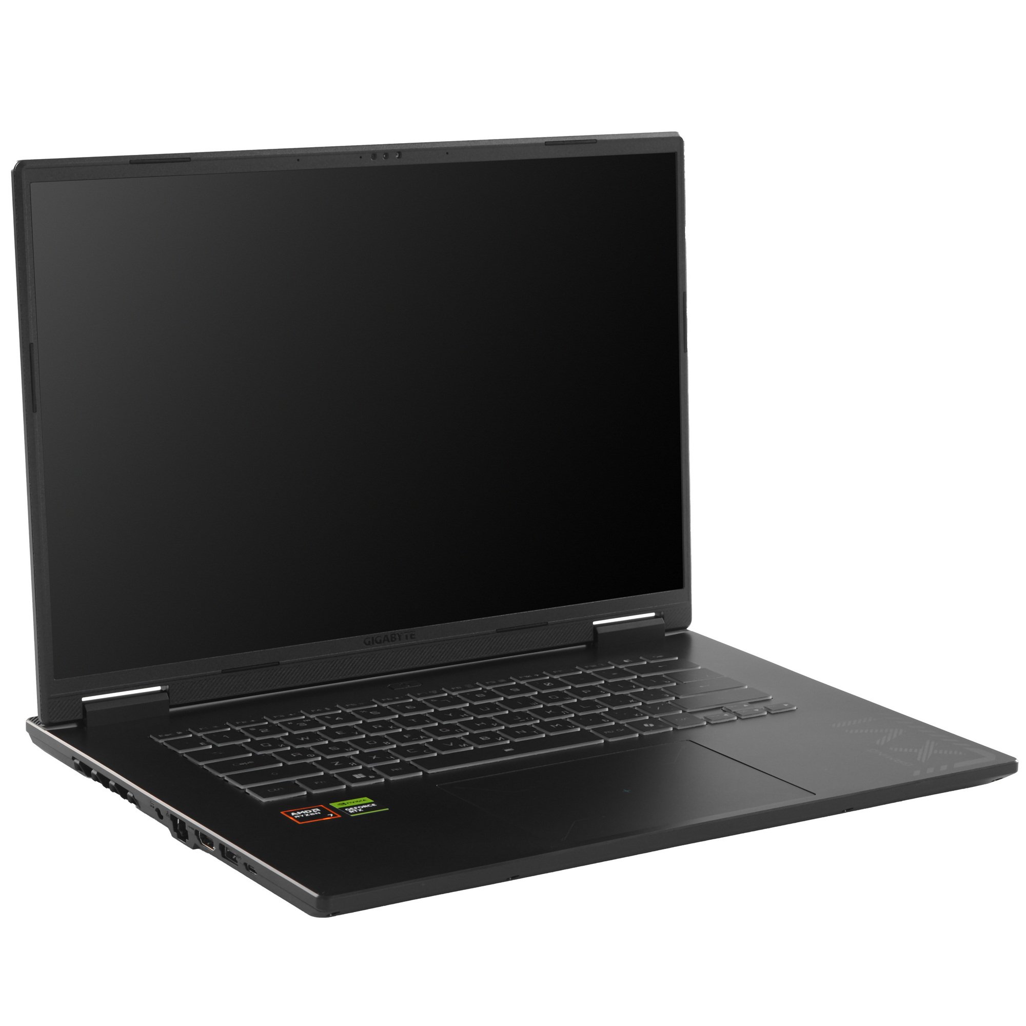 Ноутбук GIGABYTE GAMING A16 оснащен экраном диагональю 16 дюймов. Панель IPS формата Full HD с частотой 165 Гц и сертификатом Pantone Validated отображает четкую контрастную картинку. Верхняя крышка раскрывается на угол до 180°. Клавиатура Golden Curve с углублением на клавишах 0.15 мм, длиной хода 1.7 мм и подсветкой RGB гарантирует точный отклик на каждое нажатие и комфортное управление в разное время суток.