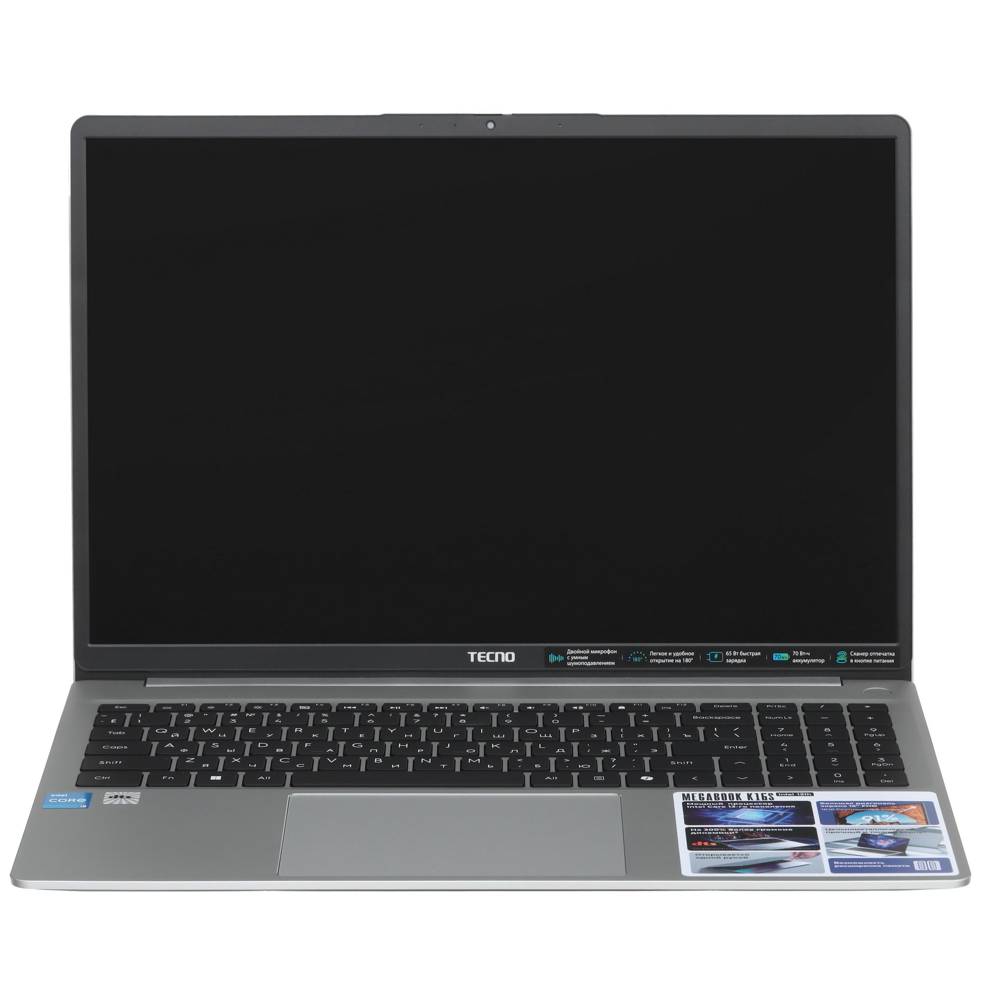 Ноутбук Tecno MegaBook K16SAA серебристый Core i5 13420H 16Gb SSD 512Gb Intel UHD Graphics 16" IPS WUXGA (1920x1200) Windows 11 Home WiFi BT Cam 6060mAh (71003300436)