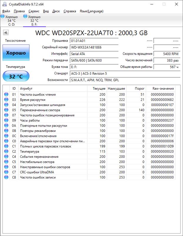 Максимальное энергопотребление жесткого диска WD Blue [WD20SPZX] не превышает 1.7 Вт, при этом в режиме ожидания накопитель расходует порядка 0.5 Вт. Накопитель отличается не только высокой емкостью, но и стабильностью работы, высоким ресурсом.