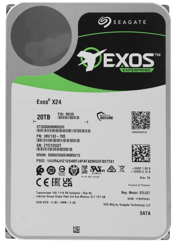 Жесткий диск Seagate Exos X24 20Tb 7200RPM SATA 512MB ST20000NM002H