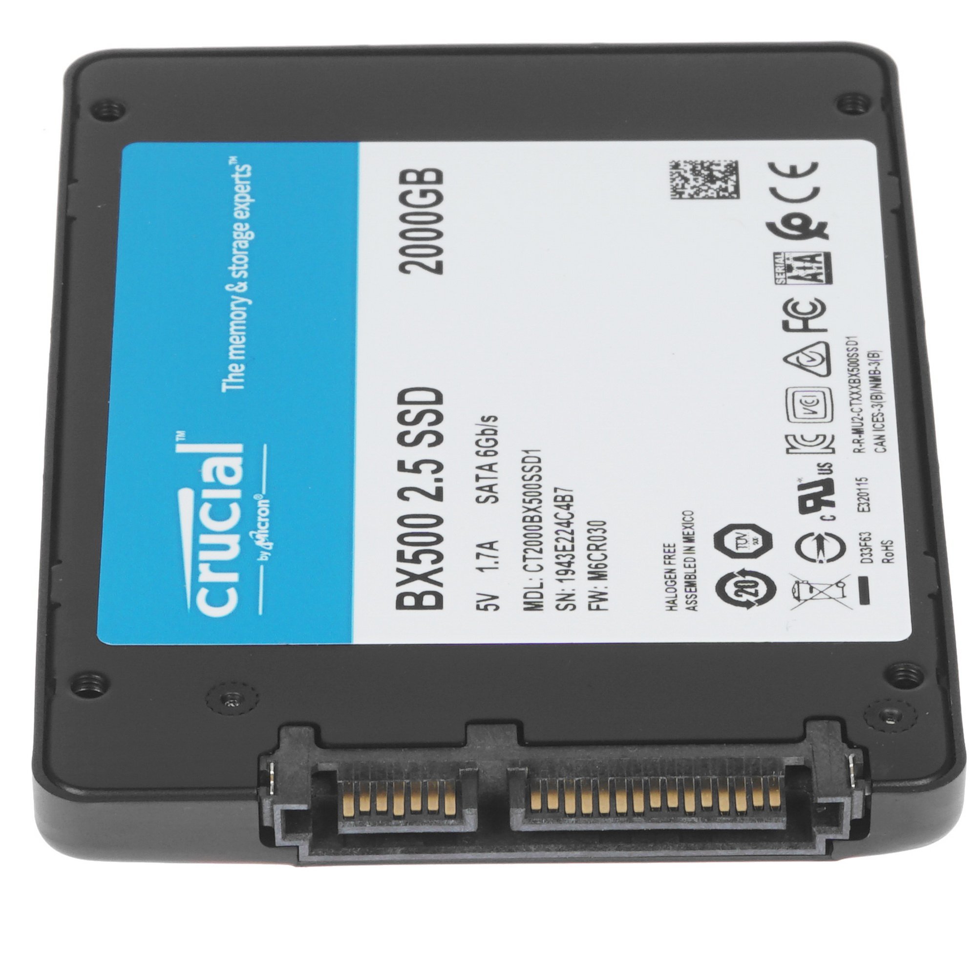 2048 ГБ SSD-накопитель Crucial BX500 [CT2000BX500SSD1] 2.5-дюймового форм-фактора присоединяется к интерфейсу SATA III. Этот разработанный на основе чипов флеш-памяти со структурой TLC 3D NAND модуль долговременной памяти демонстрирует высокие показатели скорости обмена данными (записи и считывания). Эта особенность делает его удачным приобретением для собираемого вами производительного системного блока, так как SSD даст возможность сделать загрузку ОС и запускаемых приложений гораздо быстрее. Твердотельный накопитель с внушительной емкостью 2048 ГБ, например, хорошо проявит себя в игровой сборке.