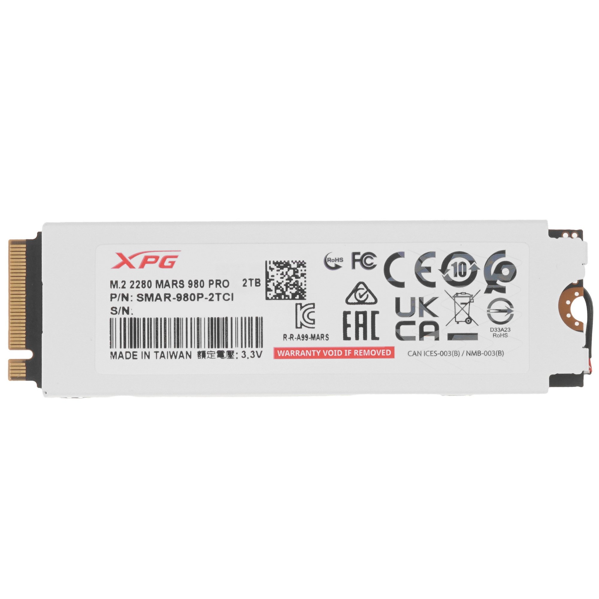 Накопитель SSD ADATA XPG MARS 980 PRO, 2000Gb, M.2(22x80мм), NVMe, PCIe 5.0 x4, 3D NAND, R/W 14000/13000Mb/s, IOPs 2 000 000/1 650 000, TbW 1480, DWPD 0.4, with Heat Sink (5 лет)