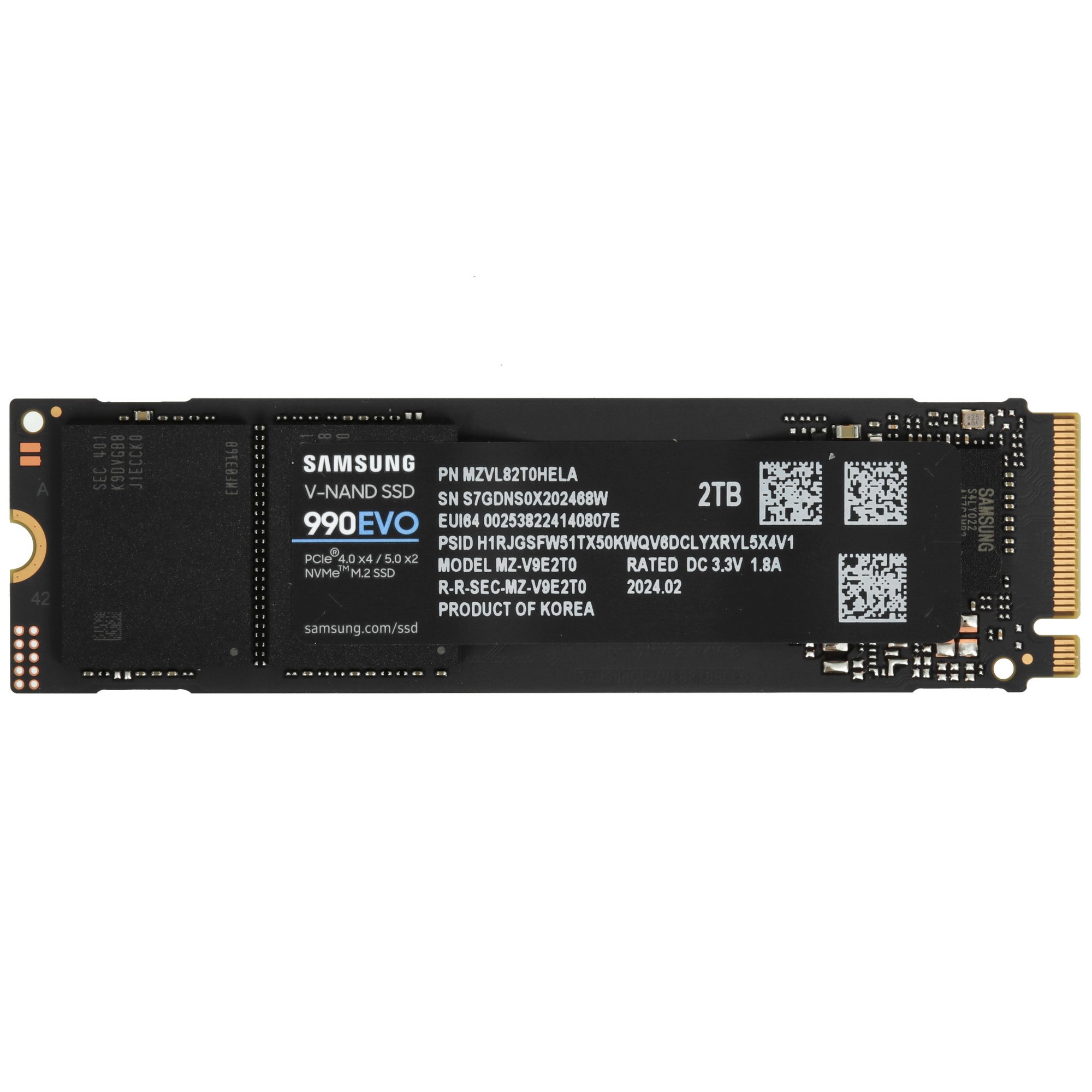 Накопитель SSD Samsung 990 EVO, 2000Gb, PCIe 4.0 x4, M.2 2280, NVMe, R/W 5000/4200