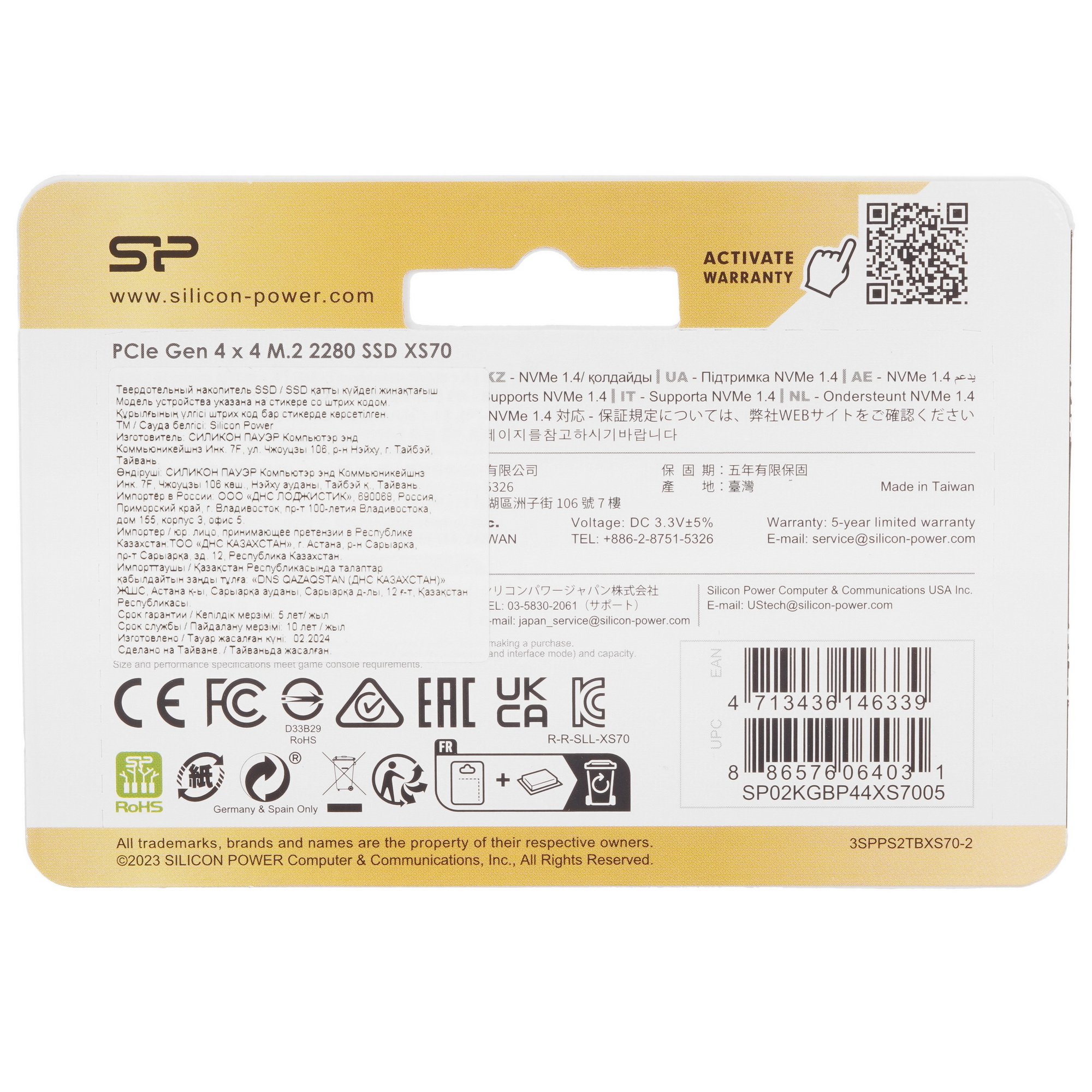 Накопитель SSD Silicon Power XS70, 2Tb, PCIe 4.0 x4, M.2 2280, NVMe, R/W 7300/6800, с радиатором