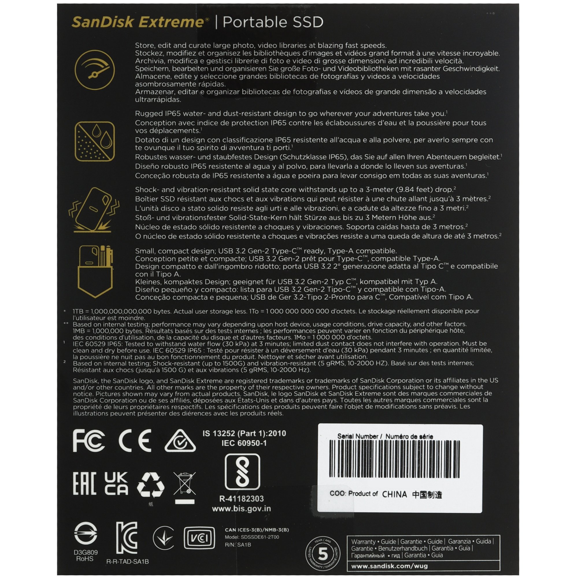 Внешний SSD SanDisk Extreme, 2TB, USB 3.2 Gen 2 Type-C, R/W 1050/1000, серый