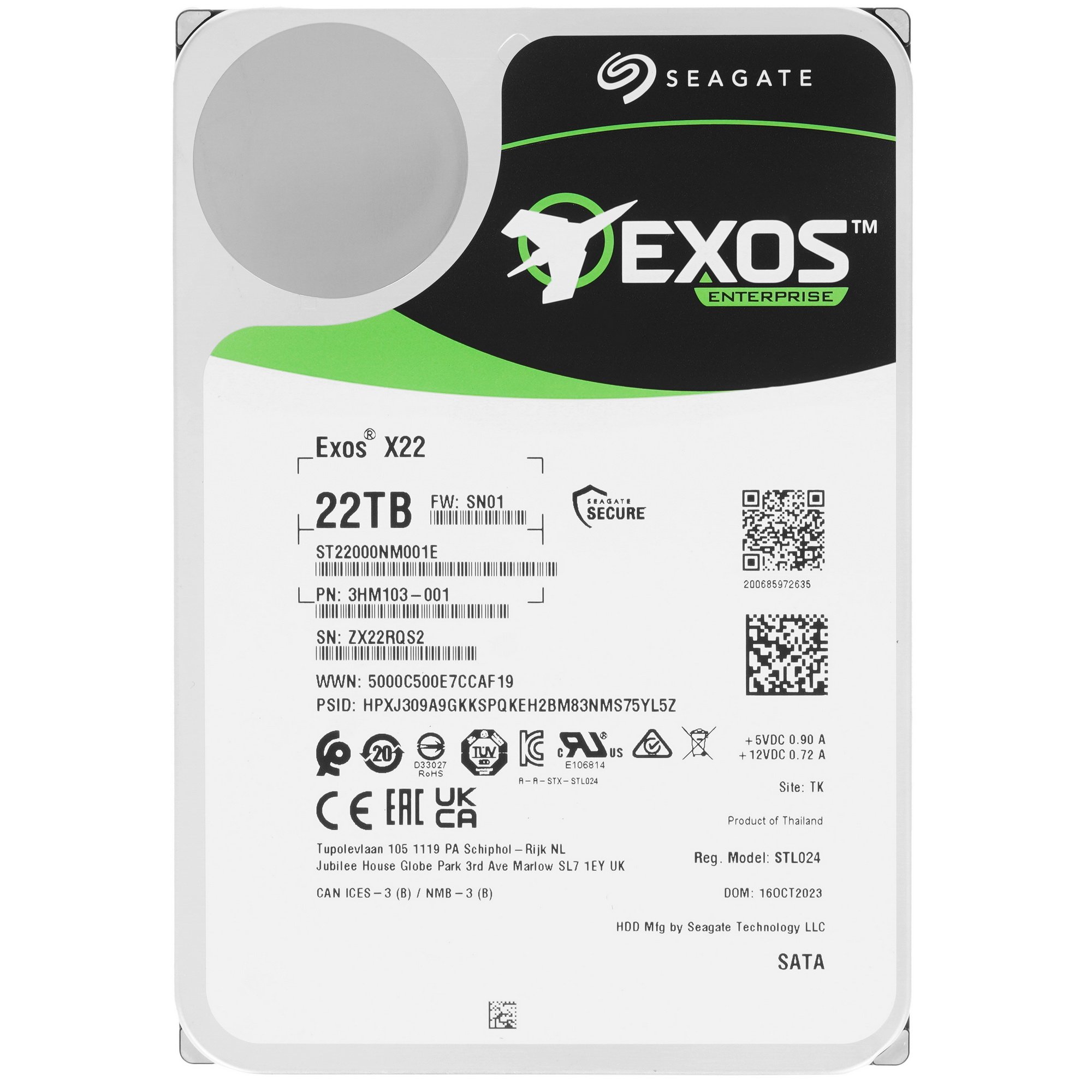 Жесткий диск Seagate HDD Exos X22 ST22000NM001E 22Tb 7200rpm SATA-III 512Mb 3.5"