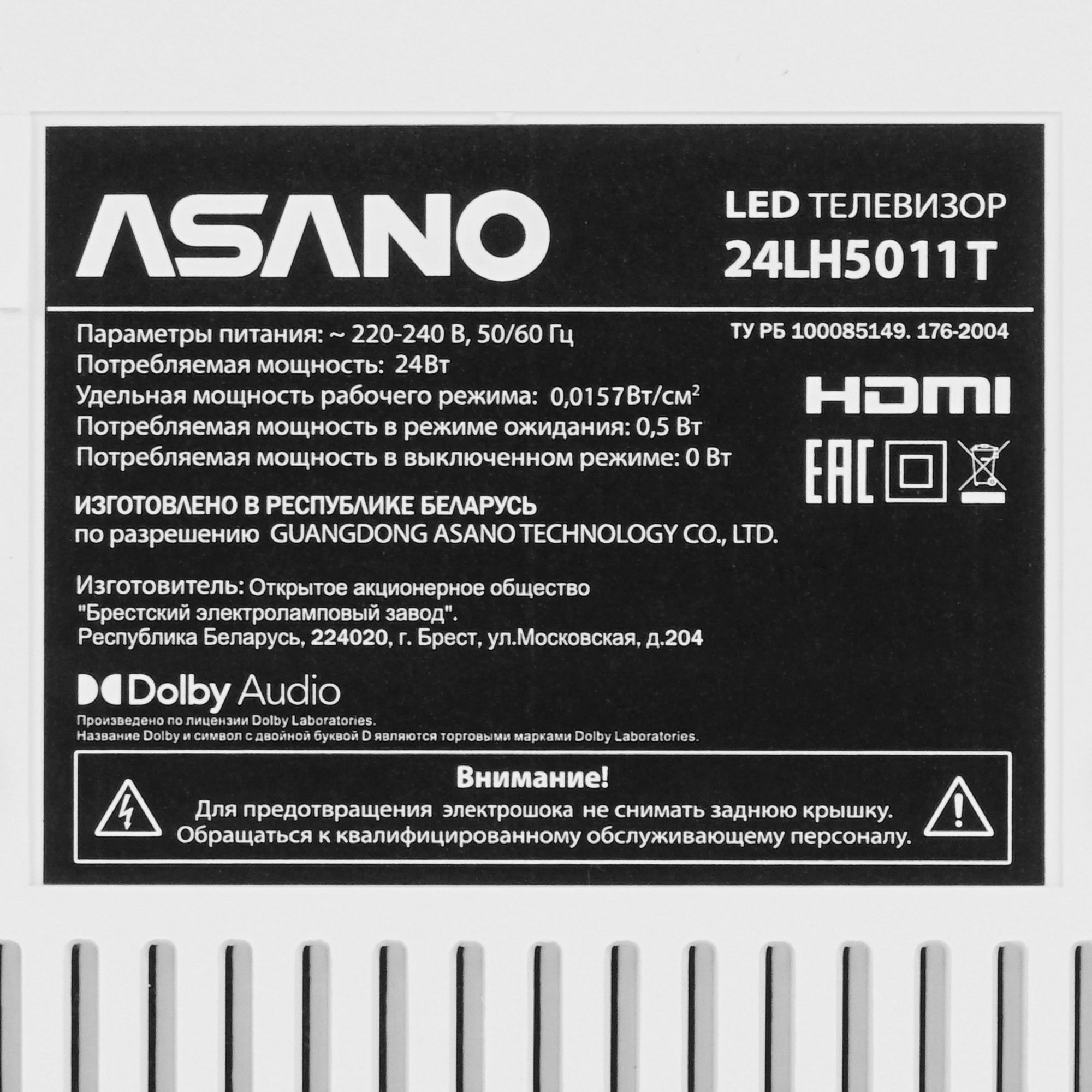 LED-телевизор Asano 24LH5011T с диагональю экрана 23.6 дюйма подойдёт для спальни, детской комнаты, кухни. Он выполнен в белом корпусе с двумя устойчивыми опорами. На панели TFT с подсветкой Direct LED и разрешением 1366x768 пикселей отображается четкое контрастное изображение. Аудиосистема мощностью 6 Вт с технологией Dolby Digital воспроизводит чистый объемный звук.