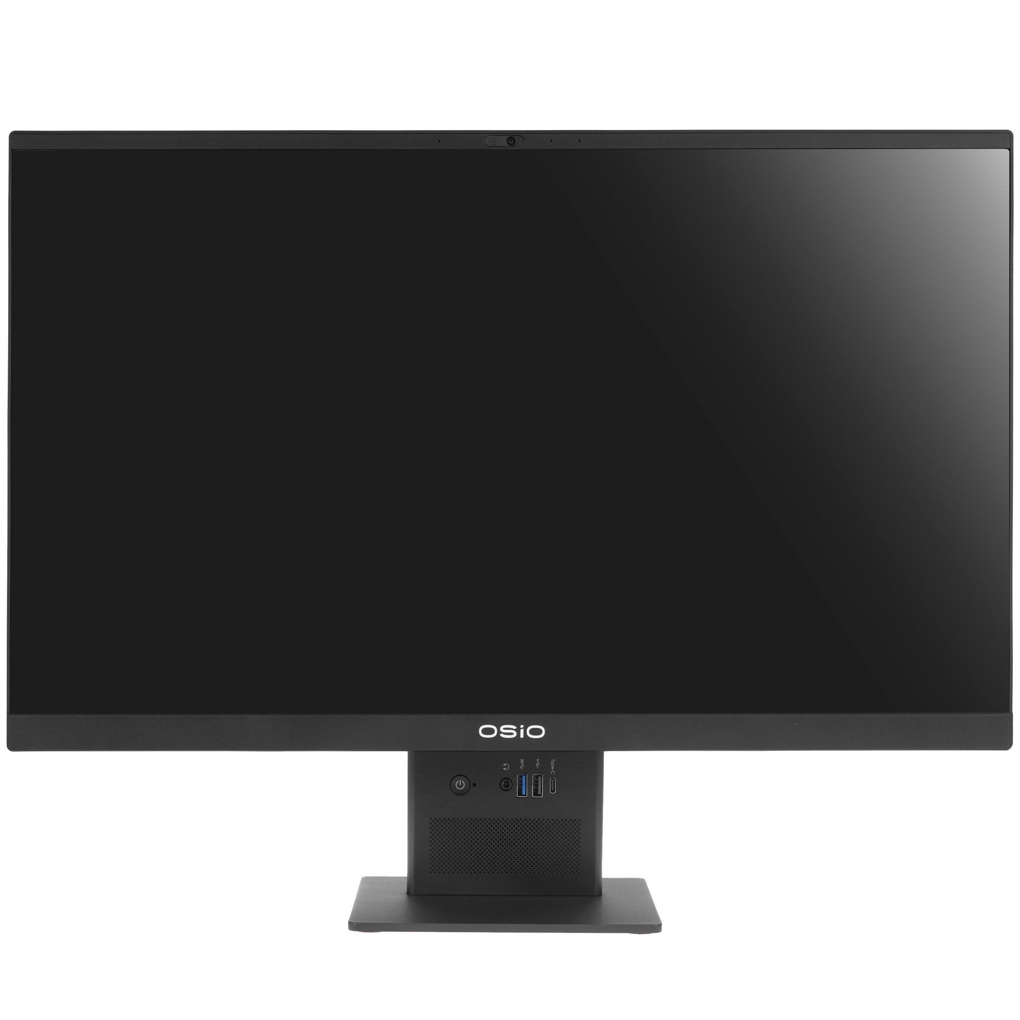 Моноблок OSIO B240i-014b выполнен в черном пластиковом корпусе со встроенными динамиками и микрофоном, веб-камерой на 5 Мп с защитной шторкой и удобно расположенными портами. На задней панели есть 2 USB-порта, HDMI-выход и LAN-порт. Спереди расположено еще 2 USB-порта и интерфейс Type-C, аудиоразъем для колонок или наушников. При нехватке свободных разъемов можно подключать периферию по Bluetooth. Модуль Wi-Fi нужен для беспроводного выхода в интернет.