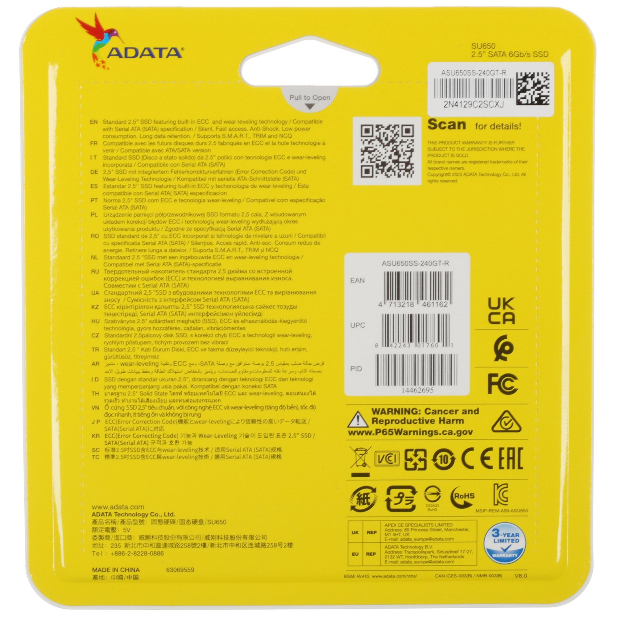 Накопитель SSD ADATA SU650, 240Gb, SATA III, 2.5", R/W 520/450