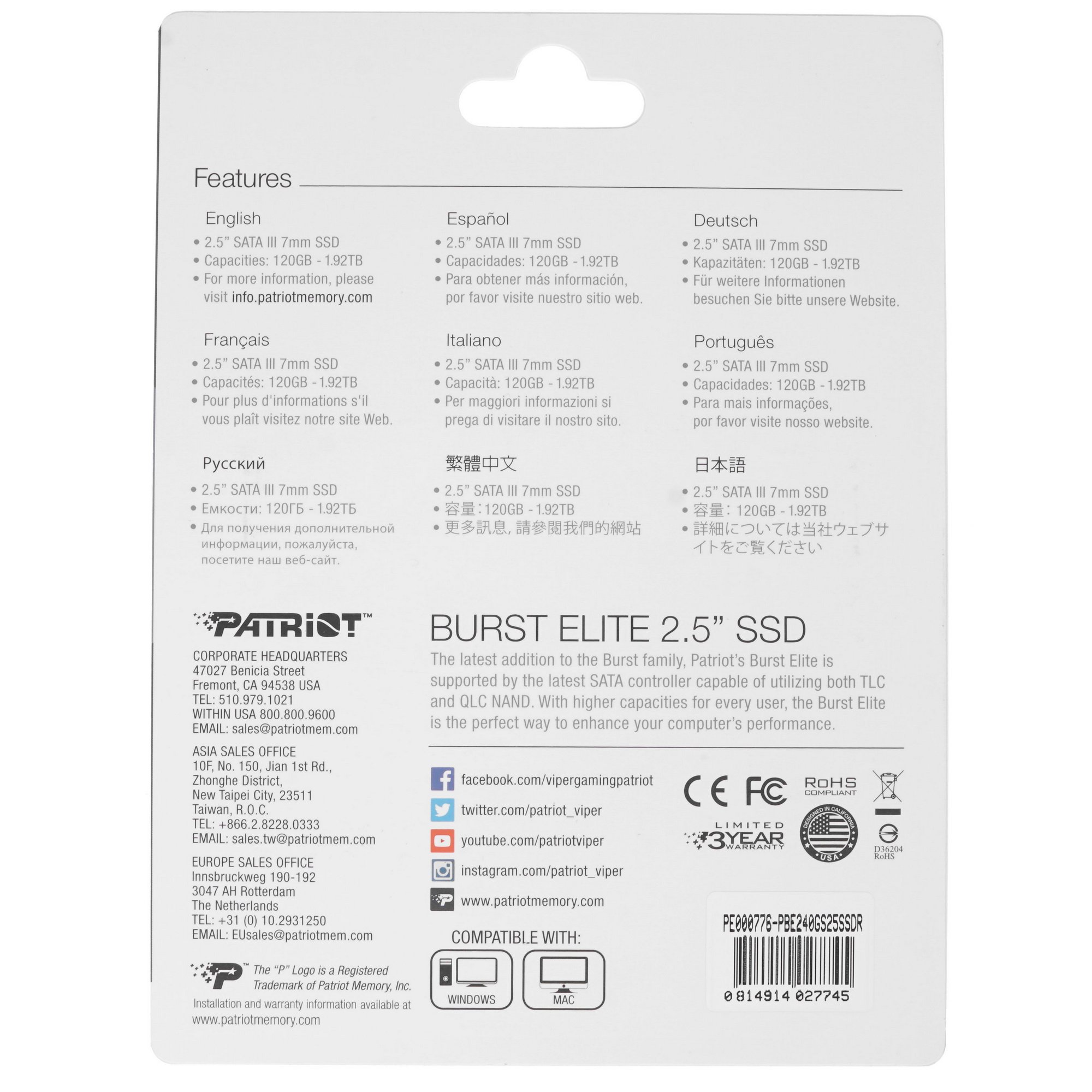 Накопитель SSD Patriot Burst Elite, 240Gb, SATA, 2.5", R/W 450/320