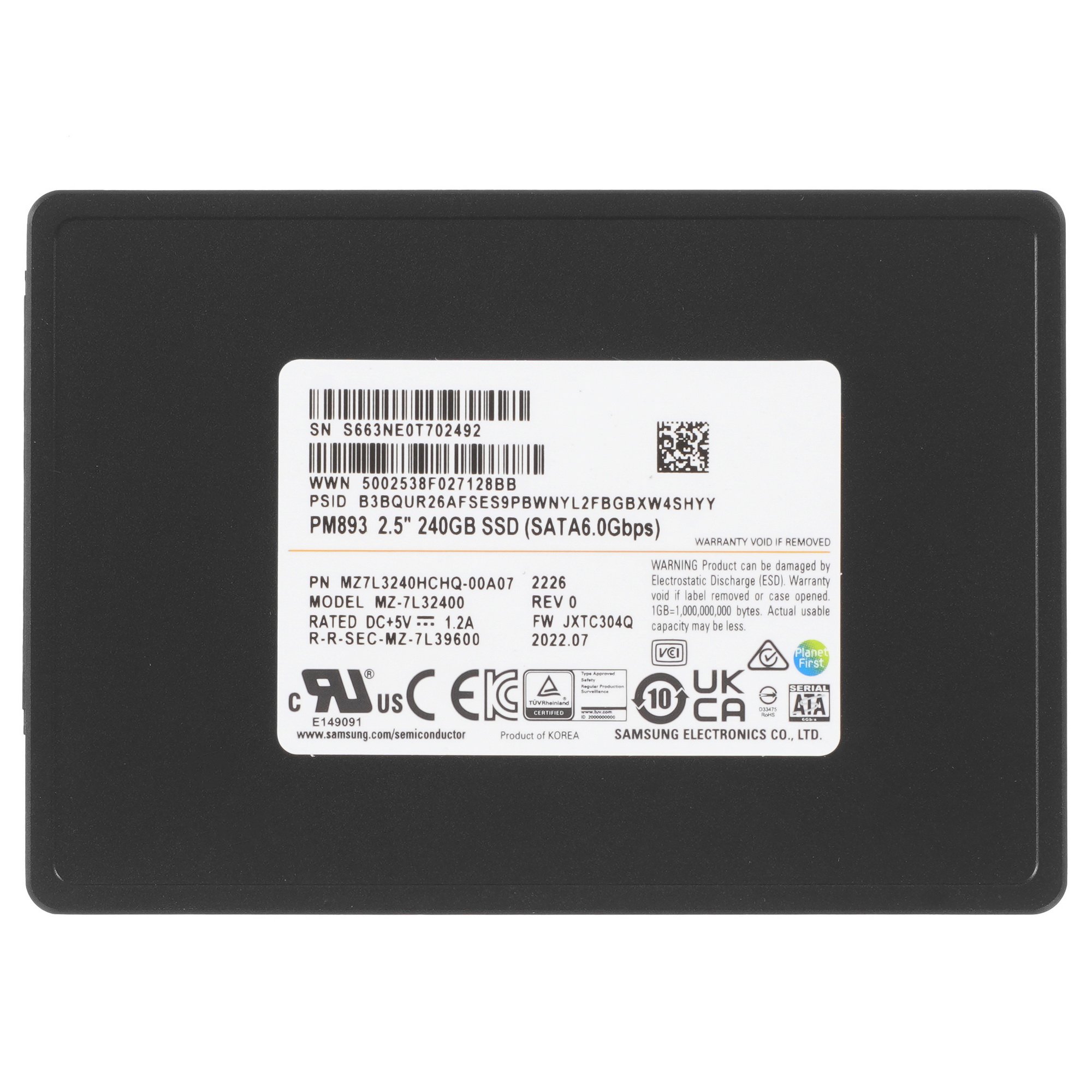 Накопитель SSD Samsung PM893, 240Gb, SATA III, 2.5", R/W 550/380