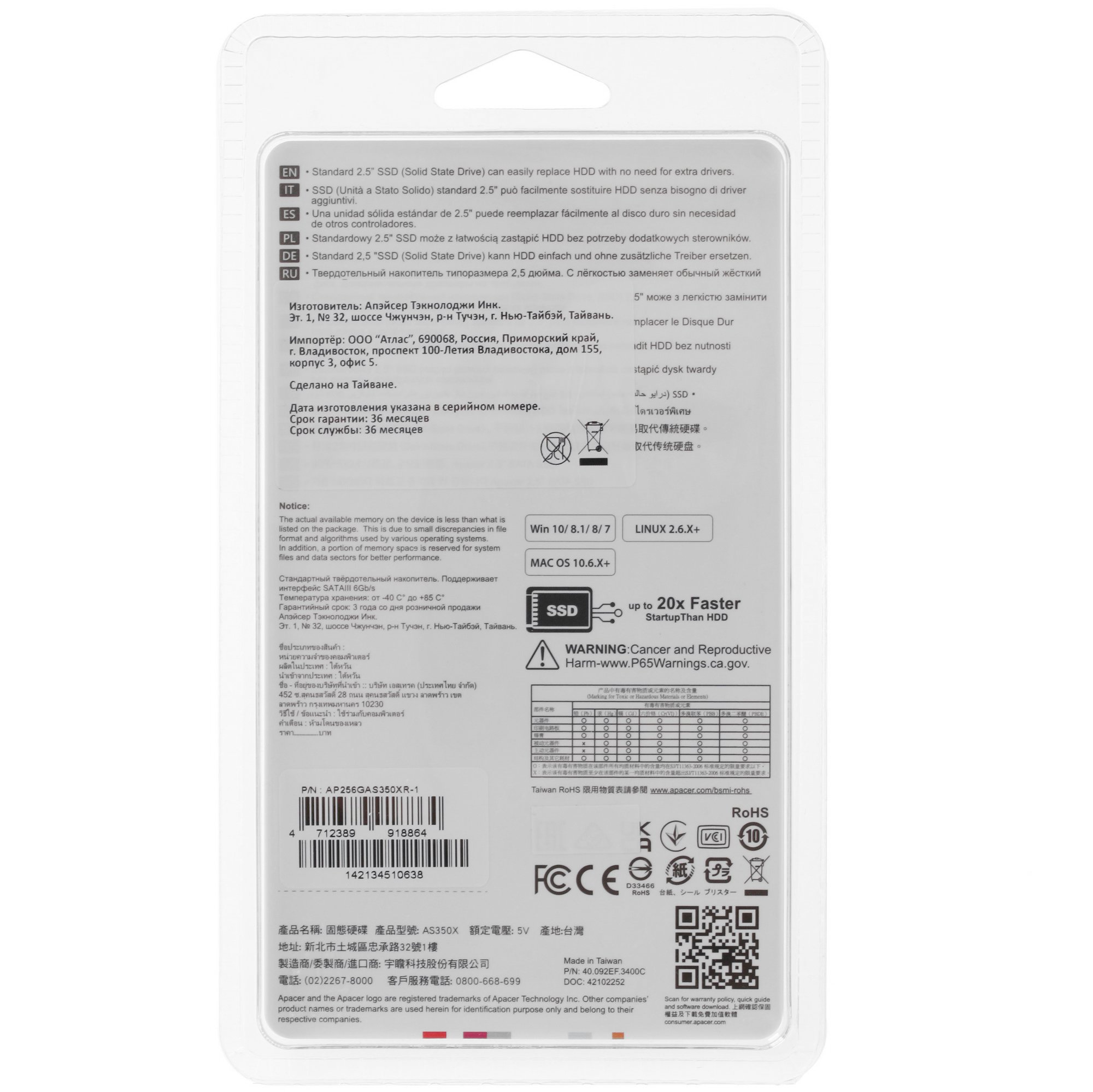 Накопитель SSD Apacer AS350X, 256Gb, 2.5", SATA III, R/W 560/540