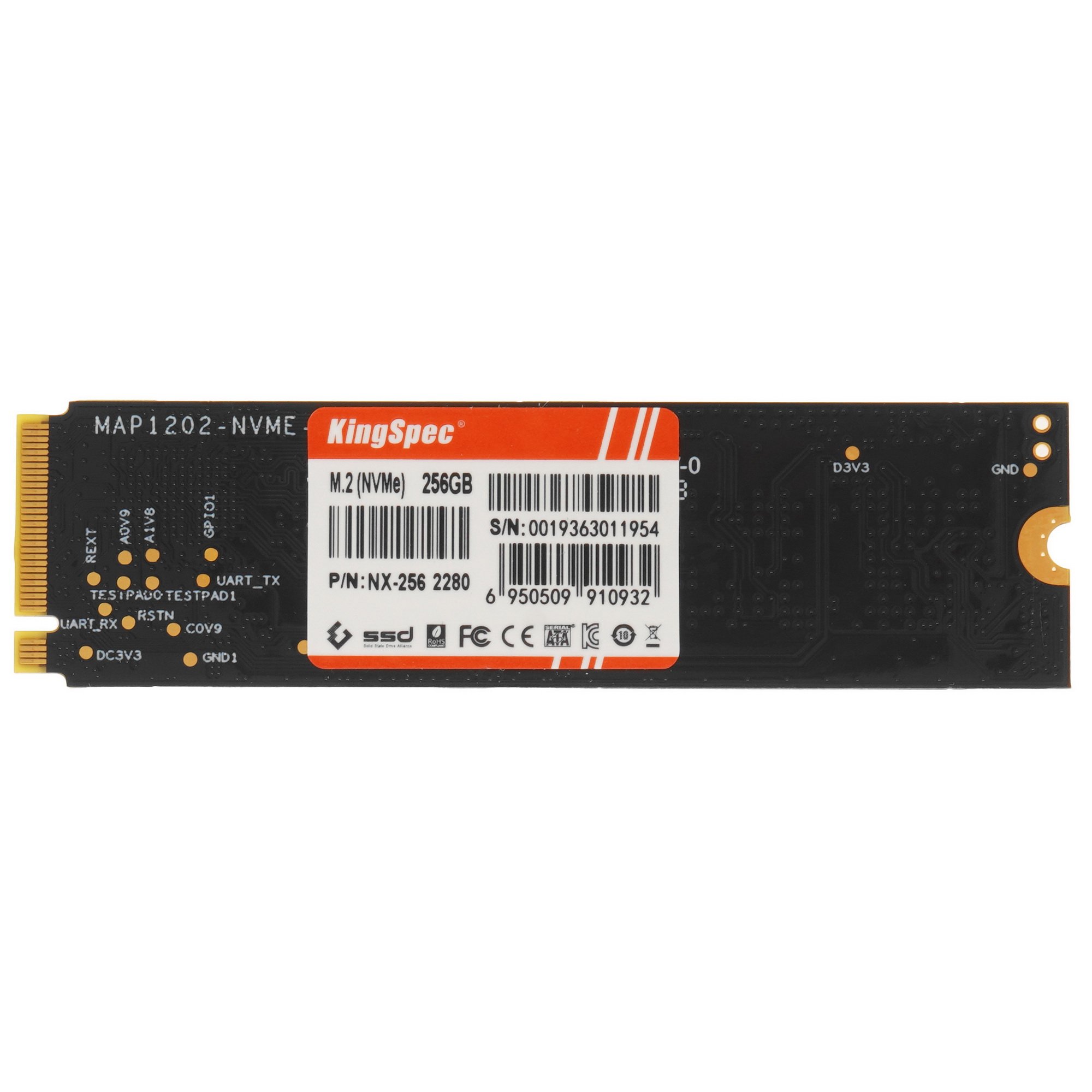 Накопитель SSD KingSpec NX-256, 256Gb, PCIe 3.0 x4, M.2 2280, NVMe, R/W 3400/3100