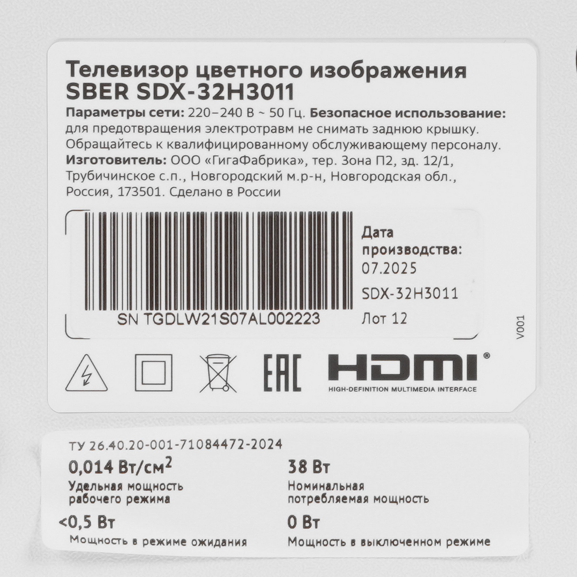 Телевизор Sber SDX-32H3011 обладает ярким экраном диагональю 32 дюйма с равномерной подсветкой и HD-разрешением для демонстрации четкой картинки даже при дневном свете. В оснащение устройства входят динамики закрытого типа, которые выдают детализированный и насыщенный звук при любом уровне громкости. Благодаря улучшенному эквалайзеру вы сможете наслаждаться звучанием при просмотре контента любого жанра. 8 ГБ оперативной памяти и операционная система Салют ТВ позволят устанавливать интересующие вас приложения, а встроенный браузер позволит просматривать страницы в интернете.