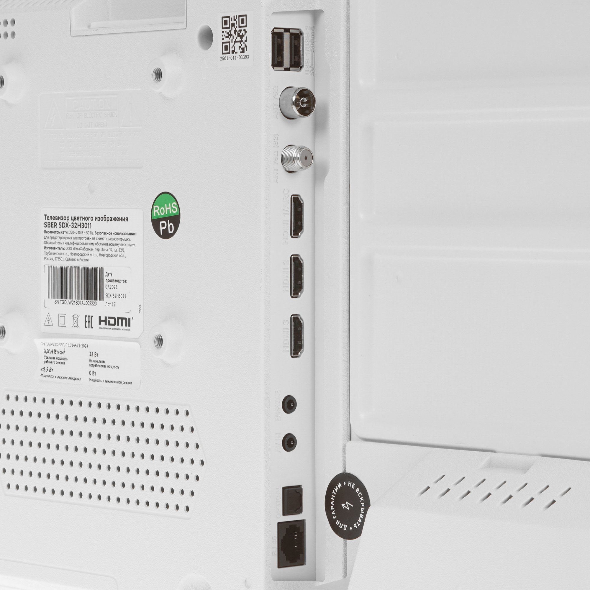 Телевизор Sber SDX-32H3011 поддерживает голосовое управление, которое позволит настраивать работу прибора не только при помощи пульта, но и посредством голосовых команд. Три порта HDMI обеспечивают одновременное подключение трех источников видеосигнала. Для воспроизведения контента с внешних накопителей данных имеются два порта USB Type-A. Для ограничения просмотра определенного контента детьми имеется функция родительского контроля.
