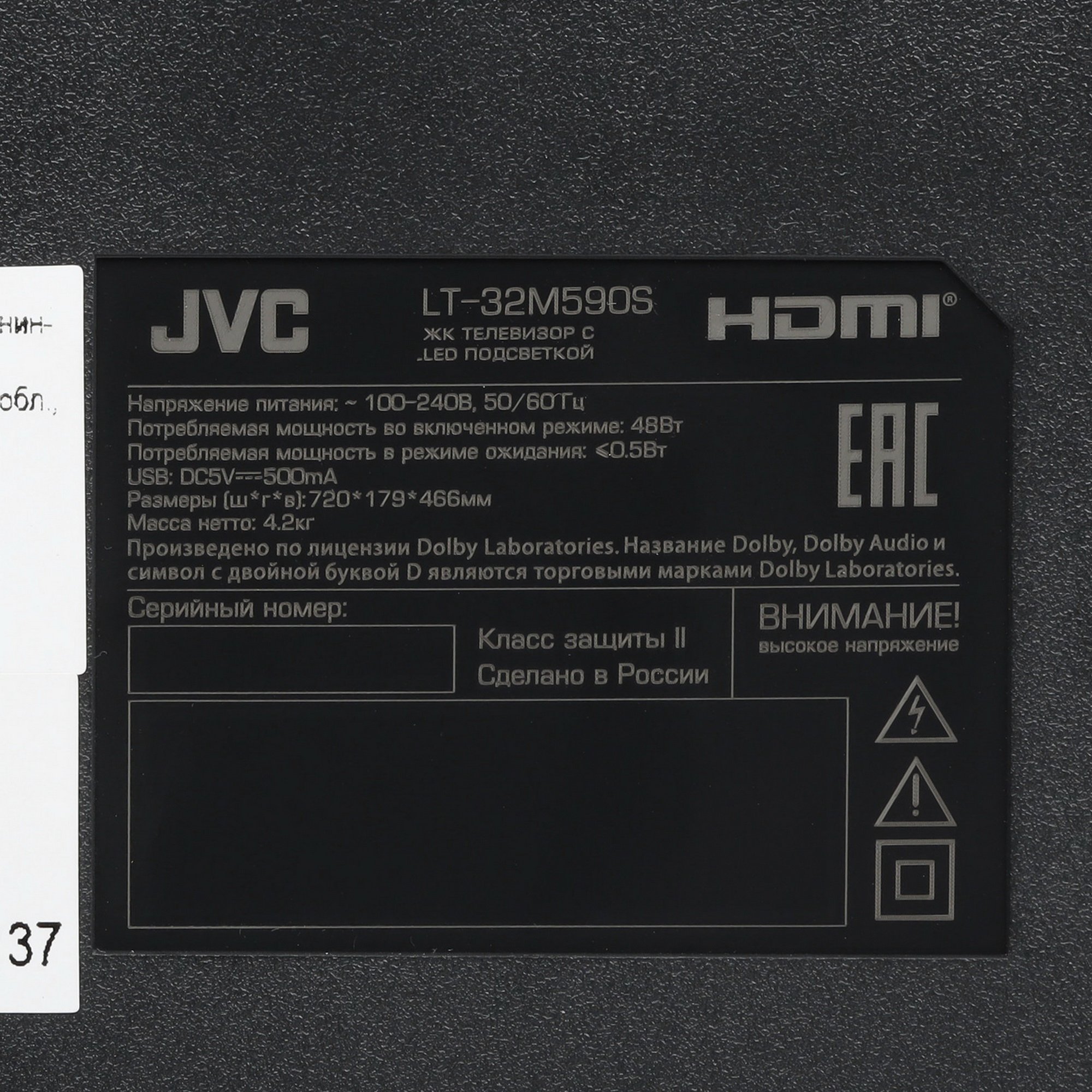 Телевизор JVC LT-32M590S с экраном диагональю 81 см займет минимум места на горизонтальной поверхности или стене. За четкость и детализацию изображения отвечают подсветка Edge LED и разрешение HD (1366x768 пикс). Трехсторонний безрамочный дизайн дисплея позволяет ему создавать практически безграничное изображение.