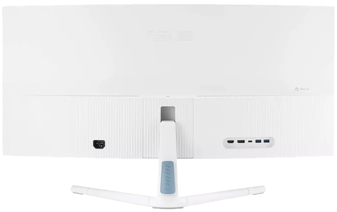 Белый 34'' монитор ASUS VU34WCIP-W Eye Care имеет акустическую систему из 2-х встроенных динамиков. Вам не нужно будет подключать дополнительные колонки, чтобы посмотреть фильм или пообщаться с коллегами в интернете. Монитор можно повесить на стену, так как на задней панели есть специальная конструкция. Для подключения ПК есть разъемы Type-C, DisplayPort и HDMI.