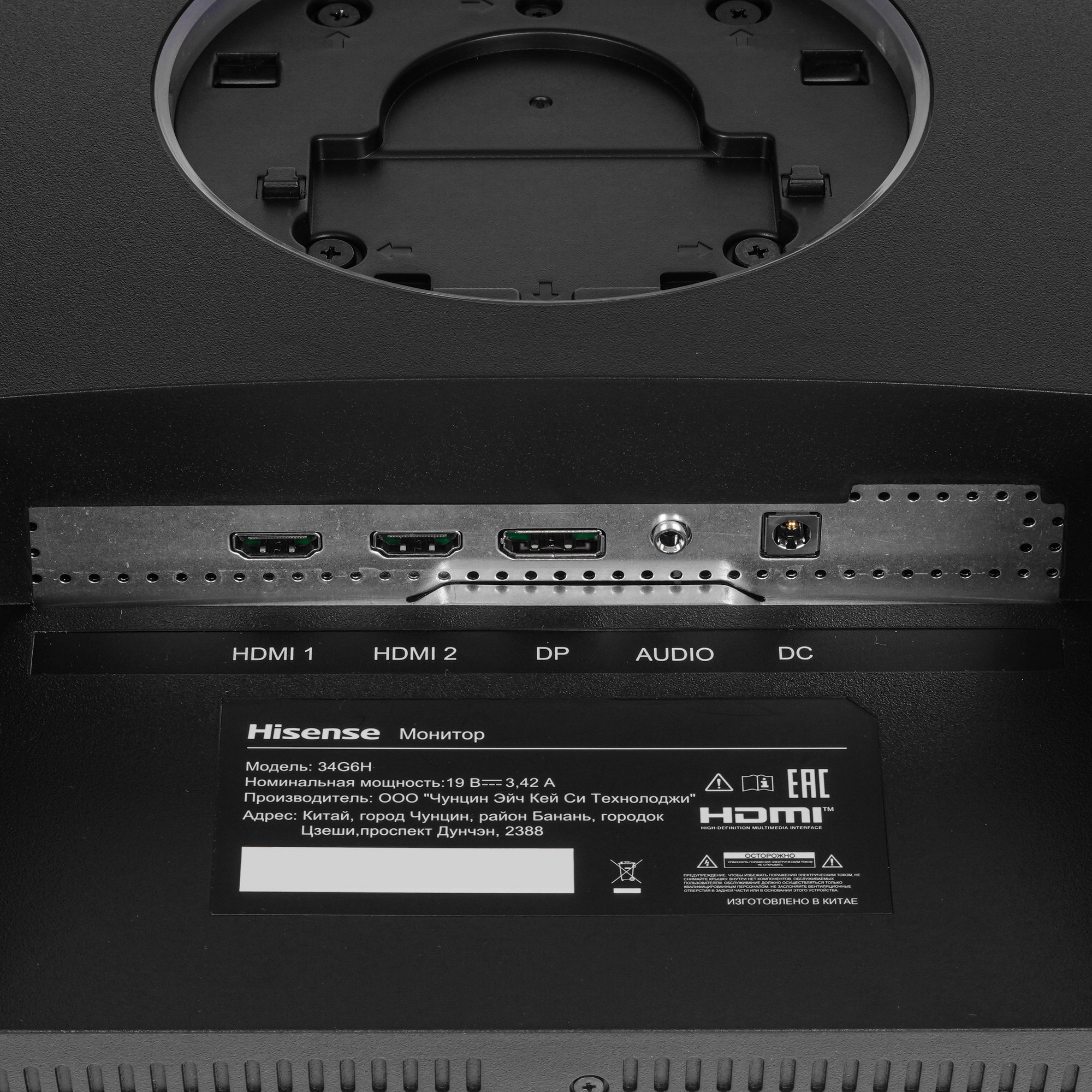 Монитор 34" Hisense 34G6K-PRO VA 3440x1440, 180 Гц, 1 мс, 21:9, 400 кд/м2, 2xHDMI, 1хDP, изогнутый, черный