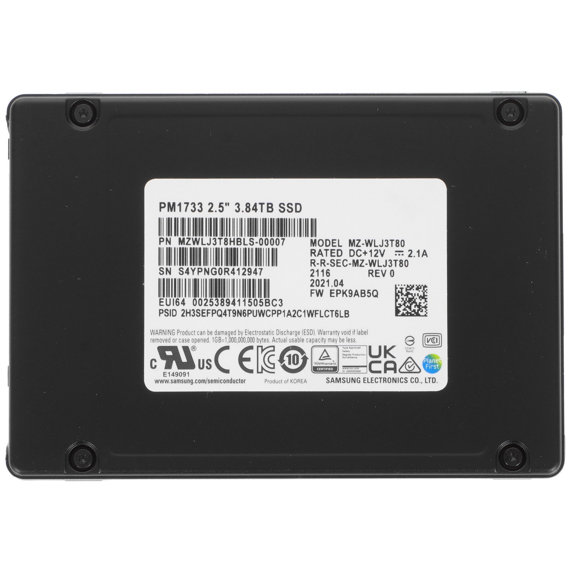 Накопитель Samsung PM1733 представлен в стандартном корпусе с форм-фактором 2.5”. SSD-диск не боится частой перезаписи, гарантируя надежность и безотказность работы с ресурсом до 5840 ТБ. Данная модель порадует внушительной скоростью чтения и записи, благодаря чему система на таком диске загружается практически моментально.