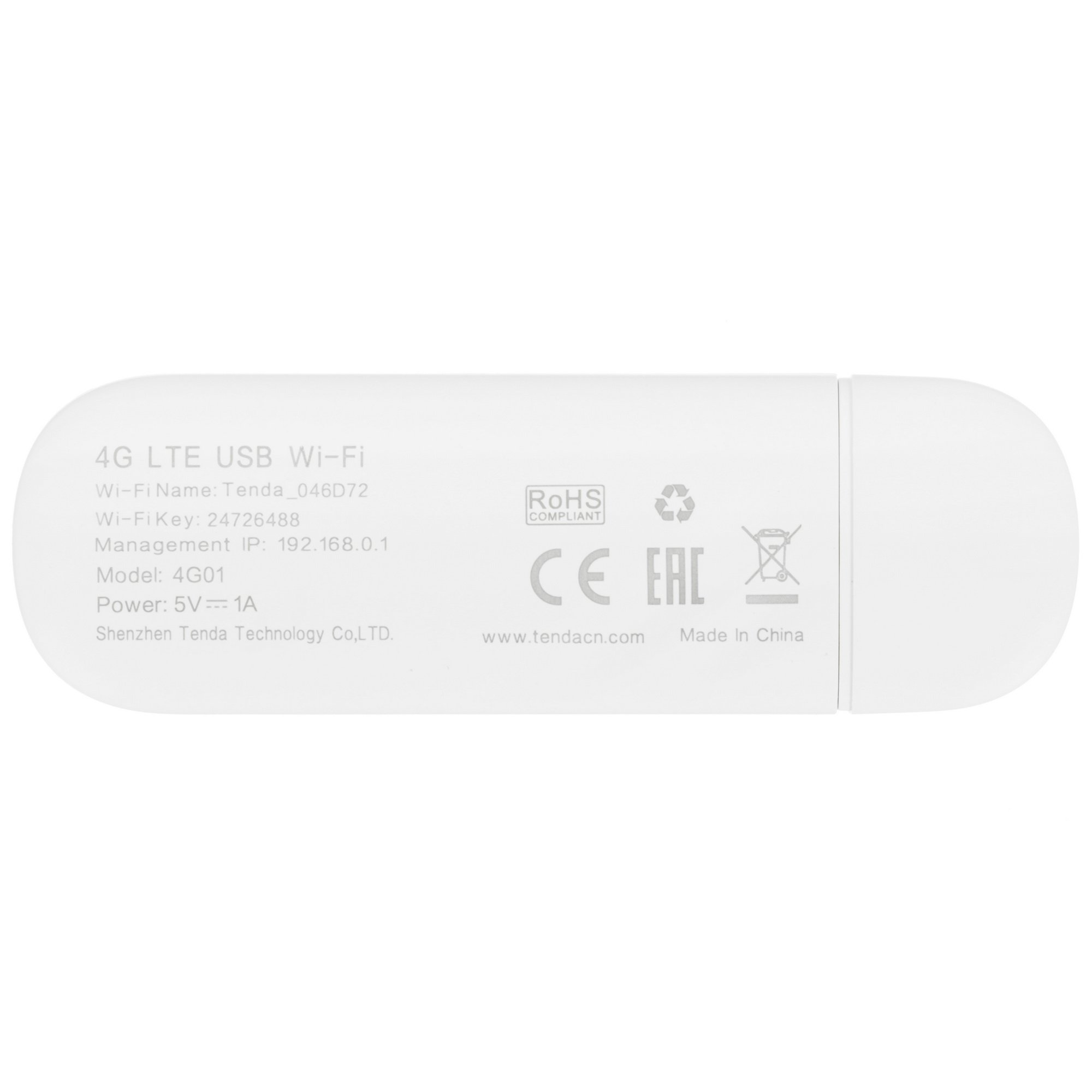 USB-модем Tenda 4G01, LTE Cat.4 150 Мбит/с, интерфейс USB2.0, белый
