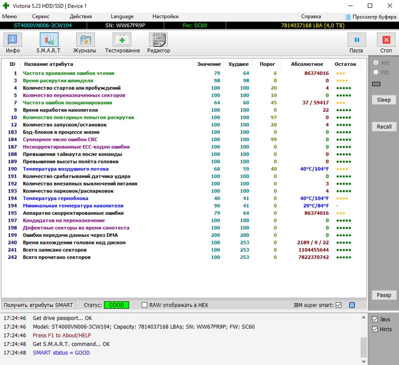 Жесткий диск Seagate 5900 IronWolf [ST4000VN006] оптимизирован для использования в многодисковых хранилищах NAS корпоративного уровня и способен выдерживать интенсивные круглосуточные нагрузки. Он обладает емкостью 4 ТБ и поэтому обеспечивает хранение довольно большого количества видеоматериала или другого контента. Для подключения накопителя Seagate 5900 IronWolf применяется востребованный интерфейс SATA III. Средства ПО Rescue Data Recovery позволяют отслеживать параметры производительности и поддерживать работоспособность накопителя.