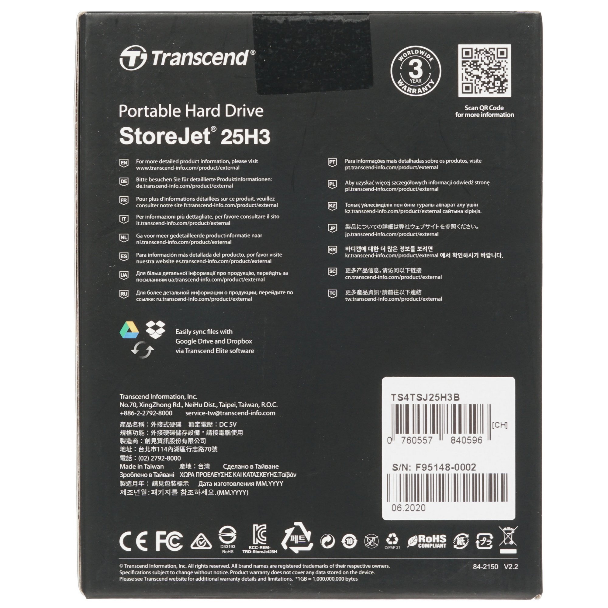 Устройство HDD Transcend StoreJet 25H3 [TS4TSJ25H3B] оснащено USB-портом стандарта 3.1 Gen 1 Type A. Поставка осуществляется вместе с кабелем питания. Прибор весит всего 298 г и обладает размерами 13.18x8.08x2.45 см, что позволяет носить накопитель с собой в рюкзаке или сумке.