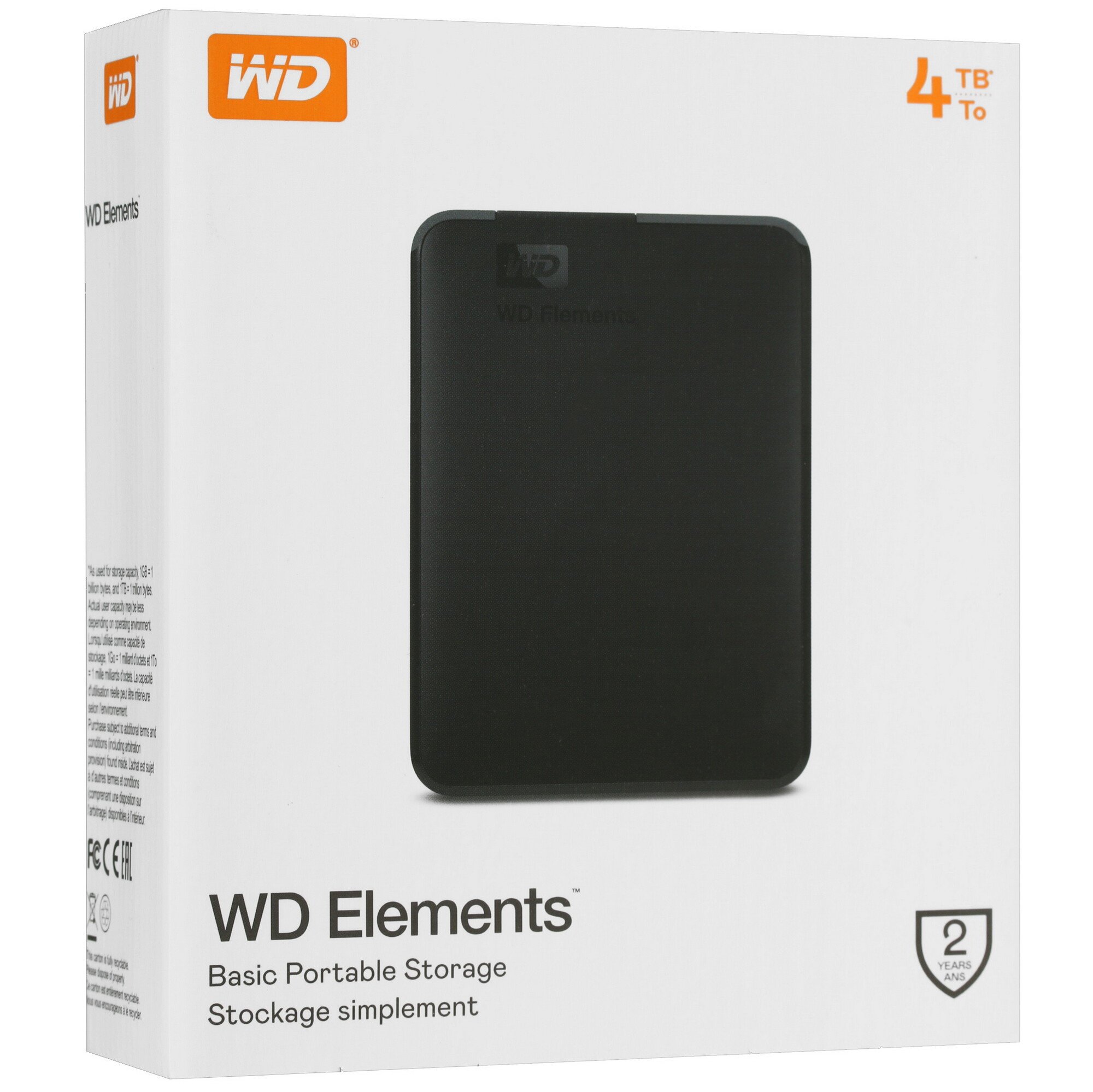 Внешний HDD 2.5" Western Digital Elements Portable, 4TB, USB 3.2 Gen 1 Type-A, 5400 rpm, черный