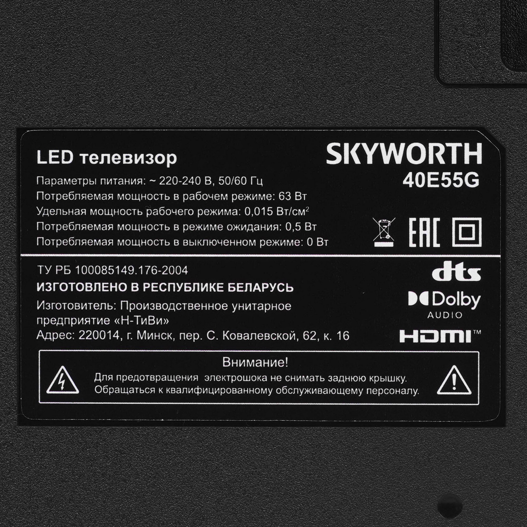 Skyworth 40E55G - телевизор с технологиями защиты зрения и функцией поиска пульта управления.