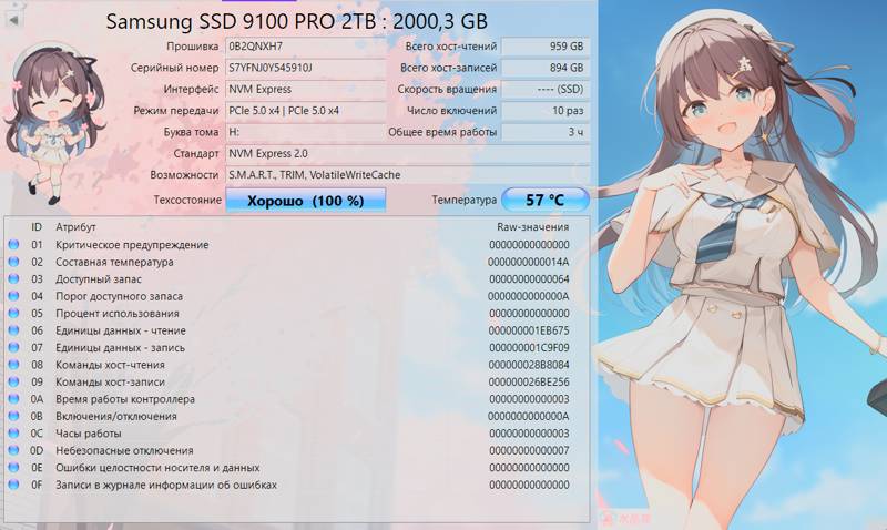M.2 NVMe накопитель Samsung 9100 PRO [MZ-VAP4T0BW] с объемом 4000 ГБ – оснащение для игровых и универсальных компьютеров. Модель форм-фактора 2280 совместима почти с любыми материнскими платами стационарных ПК и многими ноутбуками. Накопитель обеспечивает скорость последовательного чтения до 14800 МБ/с. Соответствующий показатель для записи – 13400 МБ/с. Максимальный ресурс записи устройства – 2400 ТБ. SSD совместим с консолями PS5.